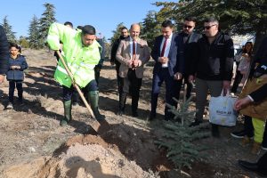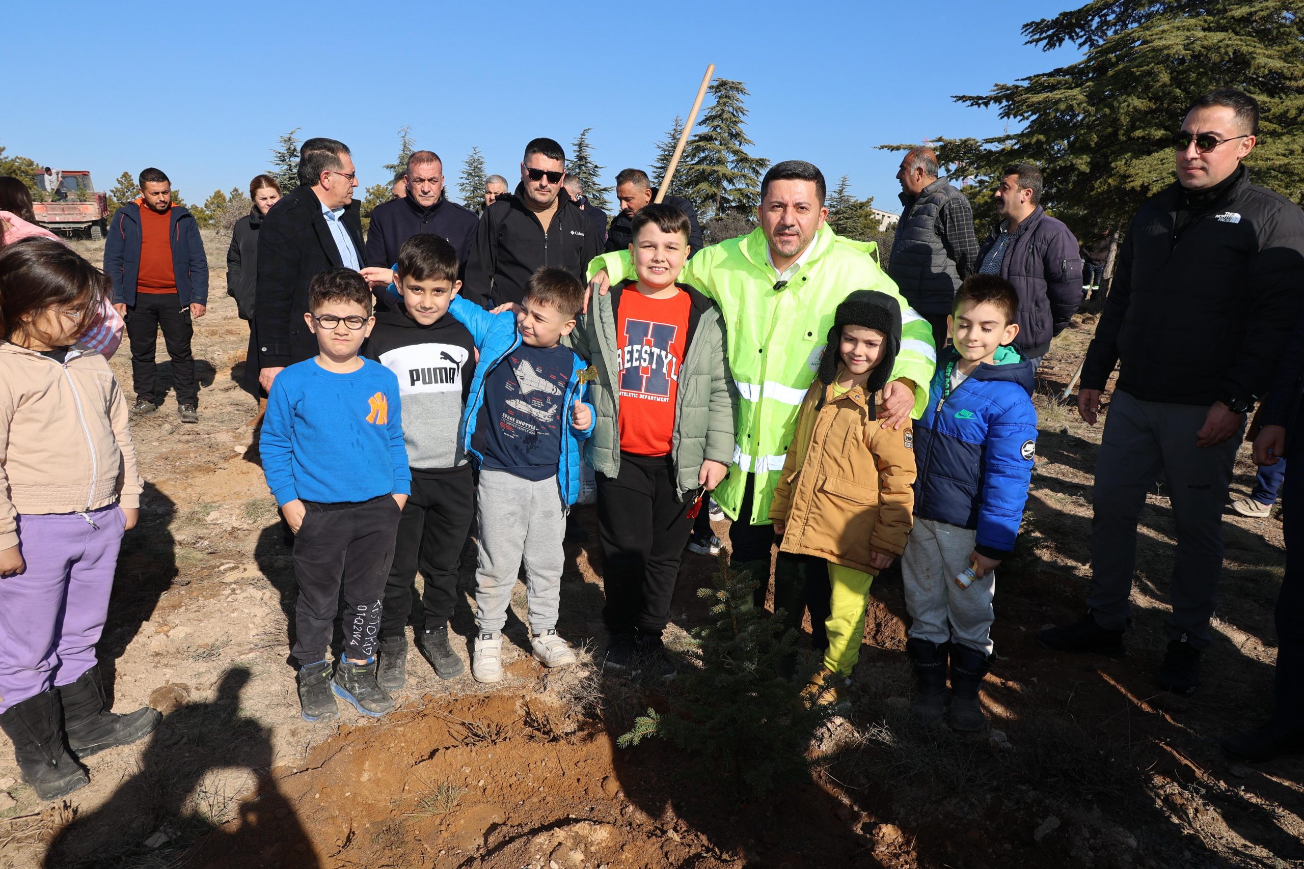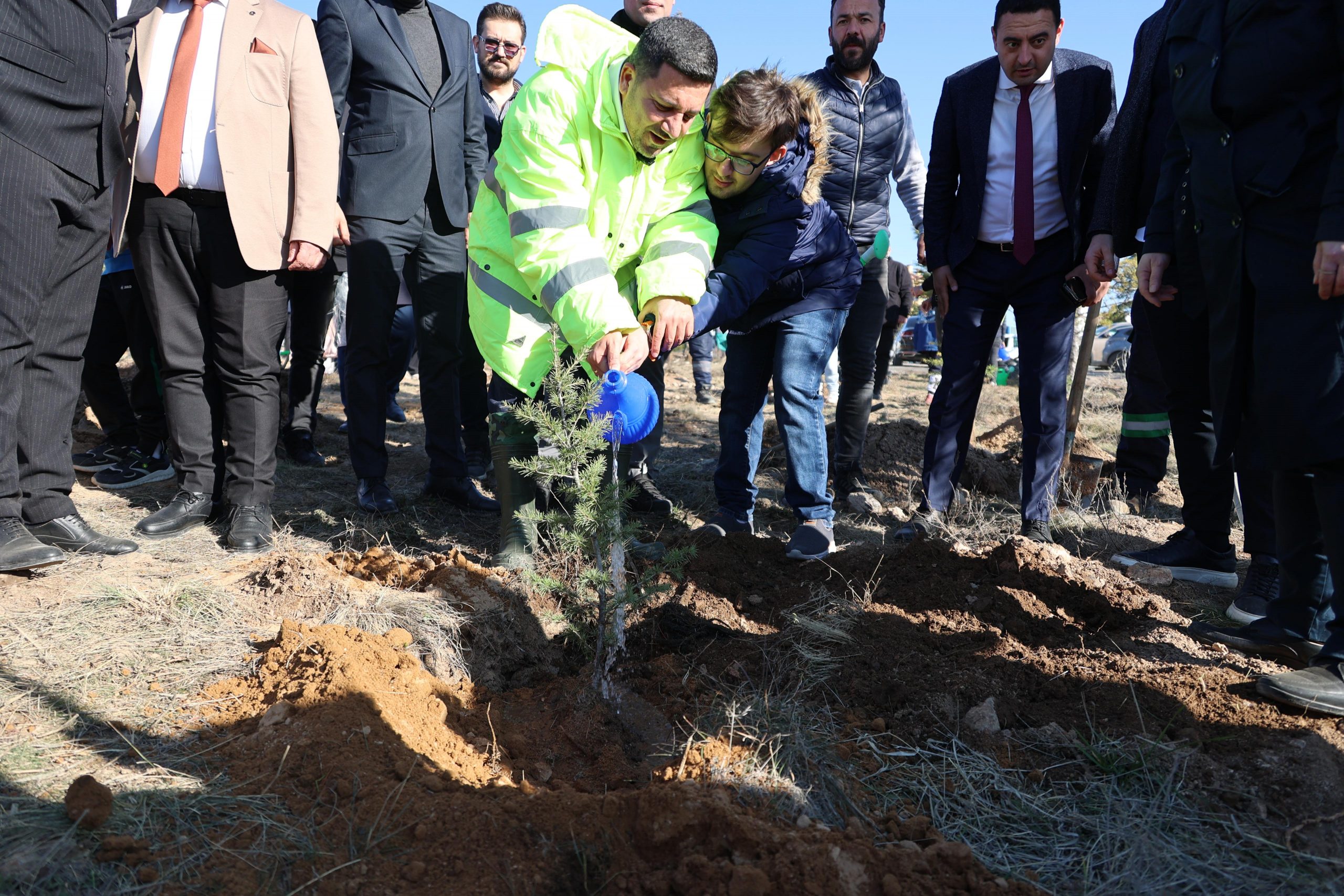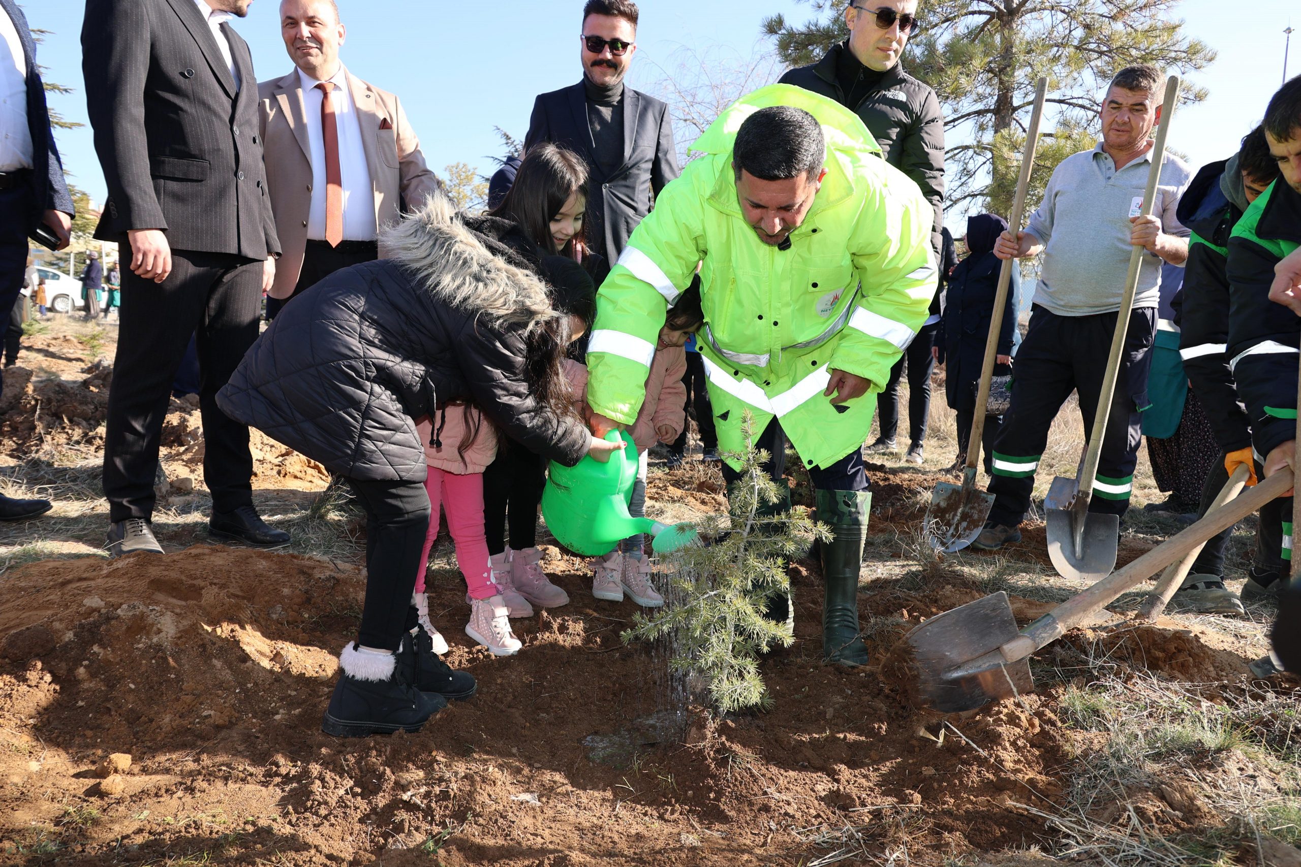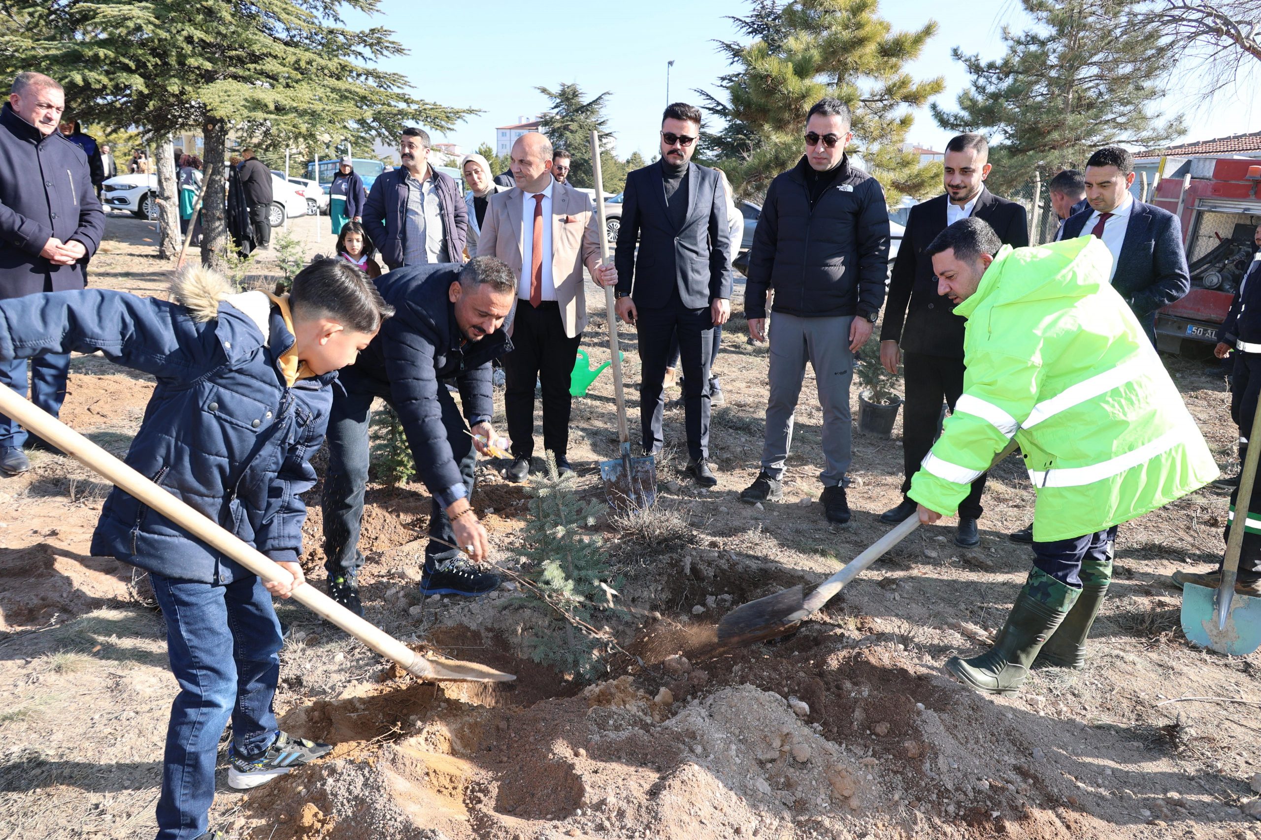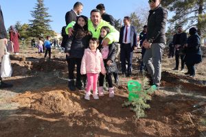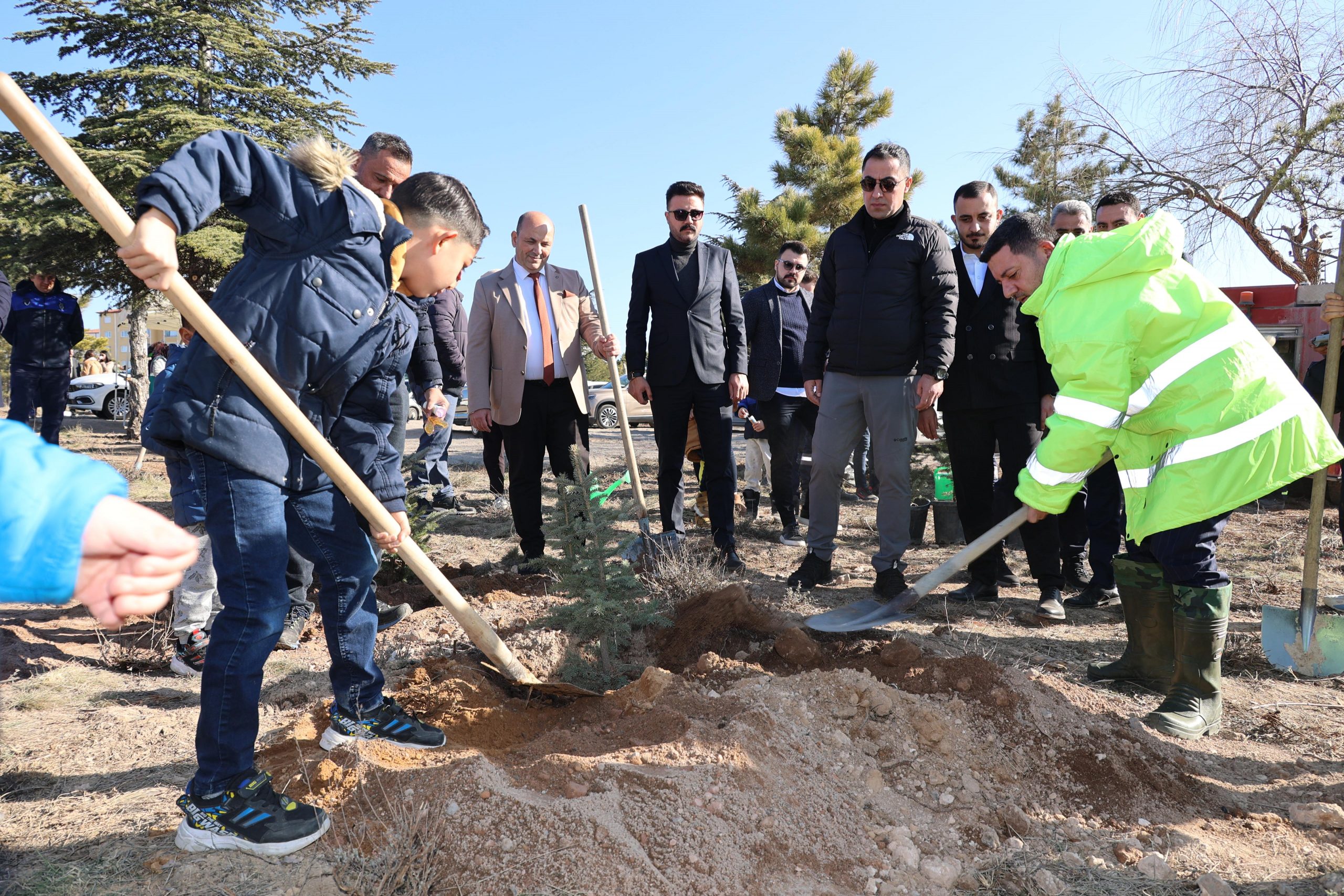 Proje çerçevesinde oluşturulan Hatıra Ormanı alanına İlkokul Birinci Sınıf öğrencilerinin de katılımıyla fidan dikimi yapıldı.