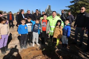 Nevşehir Belediye Başkan Yardımcıları Hasan İler ve Veli Kırşehirli, Mahalle Muhtarları ve ailelerin çocukları ile birlikte katıldıkları törende dikilen çam fidanlarına can suları Başkan Arı ve vatandaşlar tarafından verildi.