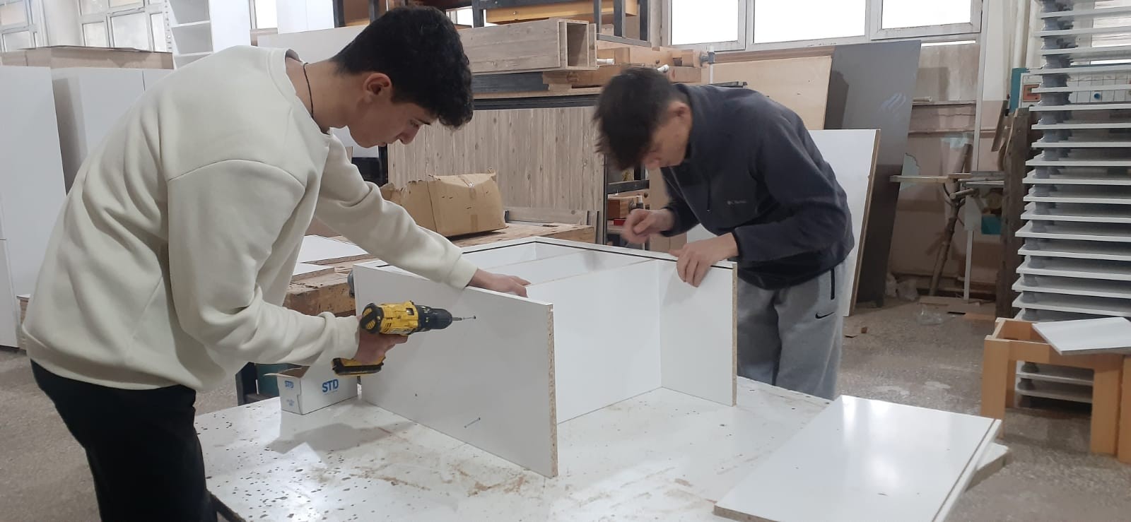 Bizlerde lise eğitimimiz bittikten sonra mobilya üzerinde çalışmalarımızı yapacağız. Belki de geleceğin utası olacağız” dedi. Nevşehir Mesleki ve Teknik Anadolu Lisesi’nde hem okuyup hem de çalıştığını söyleyen Muhammed Anasüt, “Şuanda ana sınıfı öğrencilerine dolap yapıyoruz.