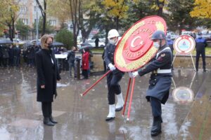 Nevşehir Valiliği önünde bulunan Atatürk Anıtı önünde düzenlenen tören çelenk sunumu ile başladı. Nevşehir Valisi İnci Sezer Becel ve Nevşehir Belediye Başkanı Dr. Mehmet Savran tarafından Atatürk Anıtına çelenk sunumun ardından Ulu Önder Mustafa Kemal Atatürk’ün ebediyete irtihal ettiği saat olan 09.05’te çalan siren eşliğinde iki dakikalık saygı duruşunda bulunuldu. Atatürk Anıtı’ndaki bayraklar yarıya indirildi. Tören daha sonra İstiklal Marşı’nın okunmasıyla sona erdi.