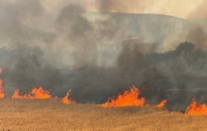 Yangın rüzgarın da etkisiyle büyüyerek diğer tarlalara sıçradı.