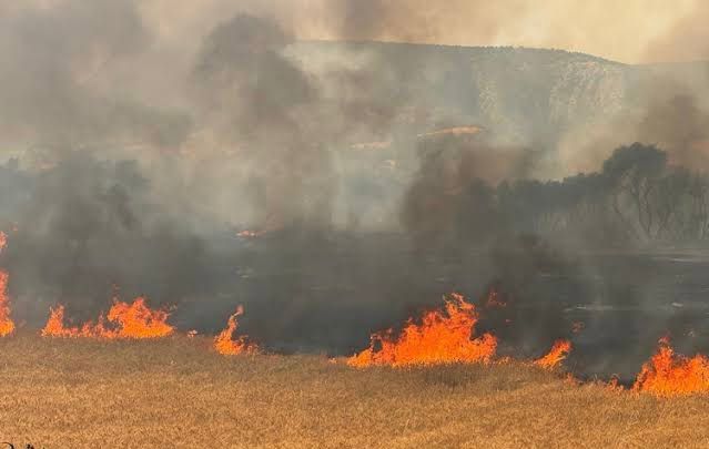 Elektrik direğinden çıktığı tahmin edilen yangında 100 dönüm ekili alan kül oldu.