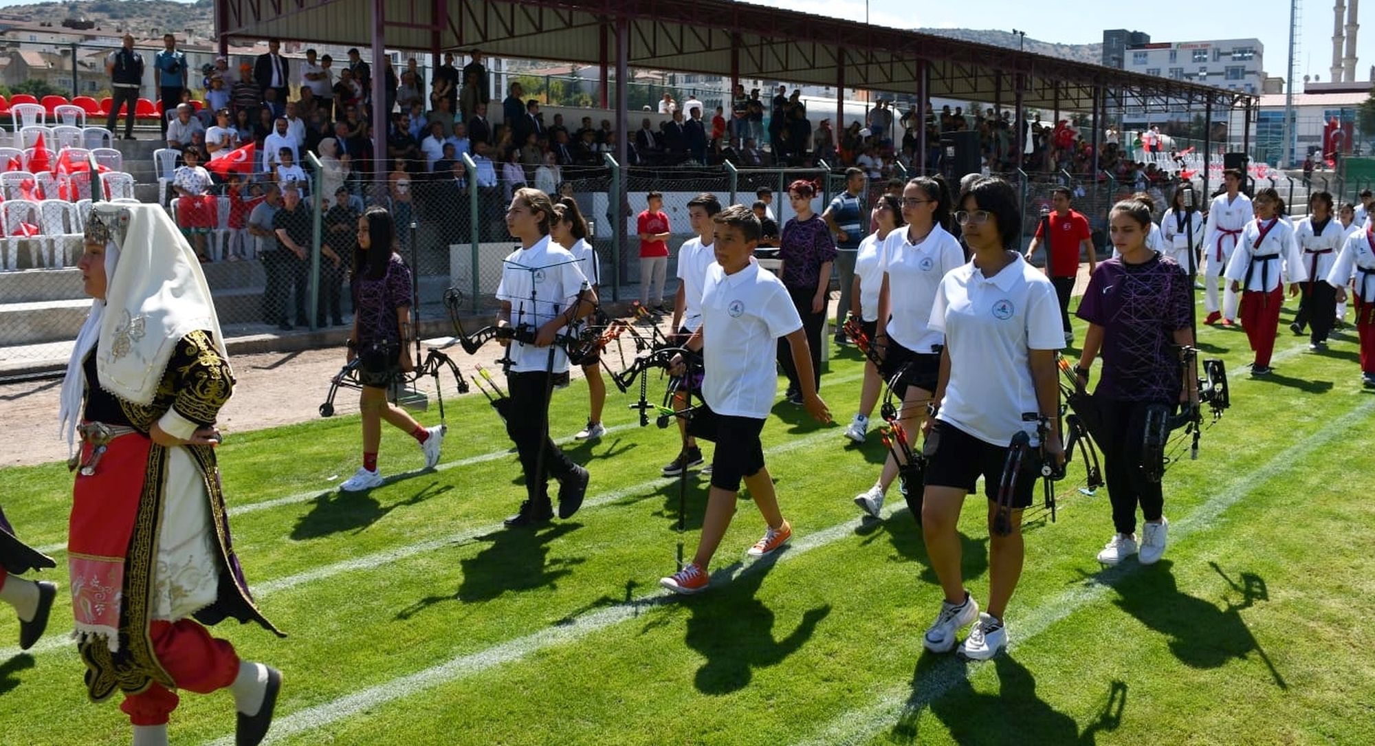Program daha sonra Nevşehir Gençlik ve Spor İl Müdürlüğü Spor Kompleksi 2 Nolu Çim Sahada devam etti. Programa; Nevşehir Valisi Ali Fidan, Nevşehir Belediye Başkanı Dr. Mehmet Savran, Nevşehir Cumhuriyet Başsavcı İsmet Çınar, NEVÜ Rektör Yardımcısı Prof. Dr. Özlem Fındık, Nevşehir İl Jandarma Komutanı Jandarma Kıdemli Albay Bahittin Murat Yakın, Nevşehir İl Emniyet Müdürü Ali Loğoğlu, protokol üyeleri, daire müdürleri, sivil toplum kuruluş temsilcileri, siyasi partilerin temsilcileri, öğrenciler ve vatandaşlar katıldı.