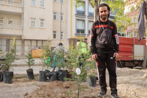 Kent merkezinde vatandaşlara dikmeleri için yapılan fidan dağıtımı sonrası 15 Temmuz Mahallesi 102. Sokak’ta bulunan yeşil alana Ahmet Faik Çakıllı Özel İnsanlar Eğitim Merkezi Özel İnsanlar için oluşturulan Hatıra Ormanı’na özel vatandaşlarımız isimlerinin yazdığı fidanları toprakla buluşturdular.