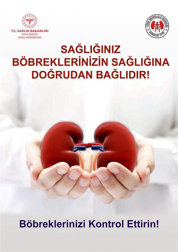 Bu doğrultuda Bakanlığımız; kronik böbrek hastalıkları ve risk faktörlerinin önlenmesi/kontrolü çalışmaları kapsamında toplumsal farkındalığı arttırmak, böbrek hastalıklarının erken tanı ve tedavi standartlarını oluşturmak ve hastalık yükünü azaltmak amacıyla “Türkiye Böbrek Hastalıkları Önleme ve Kontrol Programı” yürütmektedir.