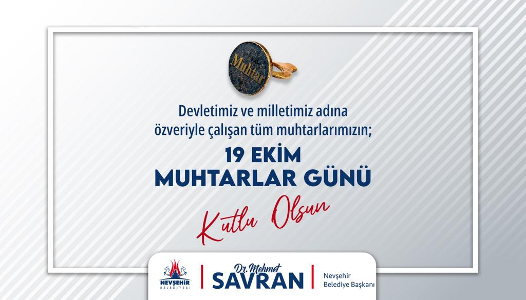 Belediye Başkanı Dr. Mehmet Savran, 19 Ekim Muhtarlar Günü nedeniyle bir mesaj yayımladı. “Yerel demokrasinin en eski örneğini temsil eden muhtarlarımız, milletimizin eli, gözü ve kulağı konumundadır.” diyen Savran, muhtarların demokratik kültürümüzün gelişimi noktasında birer mihenk taşı konumunda olduğunu kaydetti.