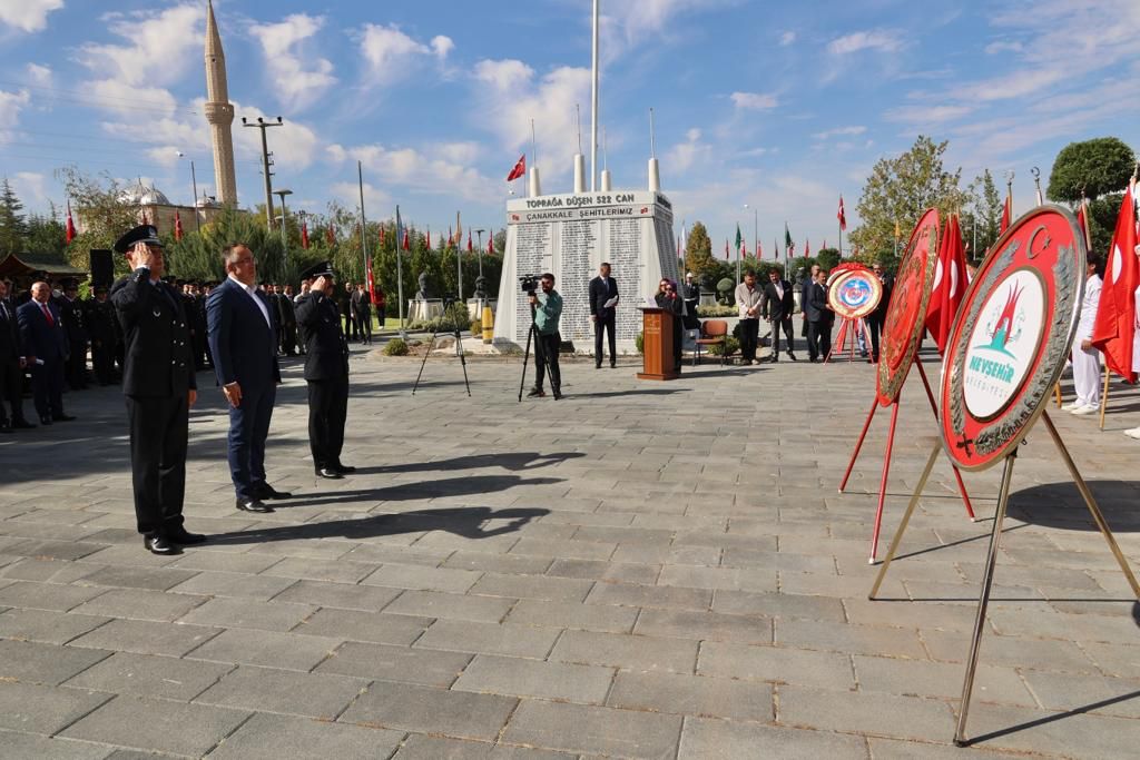 Nevşehir Şehitliğinde gerçekleştirilen tören; Nevşehir Valisi Ali Fidan, Nevşehir Belediye Başkanı Dr. Mehmet Savran, Vatan Şehitleri ve Gazileri Dernek Başkanı Ramazan Çiftci, Türkiye Harp Malulü Gaziler Şehit Dul ve Yetimleri Derneği İl Temsilcisi Zeki Didinmez ve Nevşehir Vatan Sevdalıları Derneği Başkanı İhsan Biçkin’in Atatürk Anıtı’na çelenk sunmasıyla başladı.