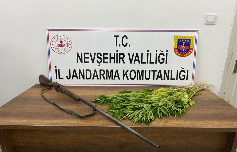Nevşehir İl Jandarma Komutanlığı Suç Araştırma Timleri (JASAT) ve Ürgüp İlçe J.K.lığı ekiplerince 19 kök hint keneviri ile 1 adet ruhsatsız av tüfeği ’’ ele geçirildi. emniyet, asayiş ve kamu düzeninin sağlanması kapsamında, 21 Haziran 2023 tarihinde yasadışı kenevir ekimi yapan şahısların yakalanması maksadıyla icra edilen faaliyet sonucunda; Ürgüp İlçesi Ortahisar Kasabası Uluseki Mevkiinde M.D. isimli şahsın bağ evinde ‘’19 kök hint keneviri ile 1 adet ruhsatsız av tüfeği ’’ ele geçirilerek şahıs hakkında yasal işlem yapıldı.