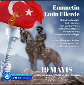 Biz Türk gençliğine güveniyoruz. İnanıyoruz ki; Türk gençliği her durum ve şartta vatanının esenliği için çalışmaktan geri durmayacak, Atamızın fikirleri ışığında bilgisi, donanımı, kapasitesi ile fark yaratacak, tarihini unutmadan, tarihe değer katarak ilerleyecektir. Bu vesileyle 19 Mayıs Atatürk’ü Anma, Gençlik ve Spor Bayramını en kalbi duygularımızla kutlar; devletimizin kurucusu Büyük Atatürk’ü, silah arkadaşlarını ve şehitlerimizi saygı, minnet ve rahmetle anıyoruz.