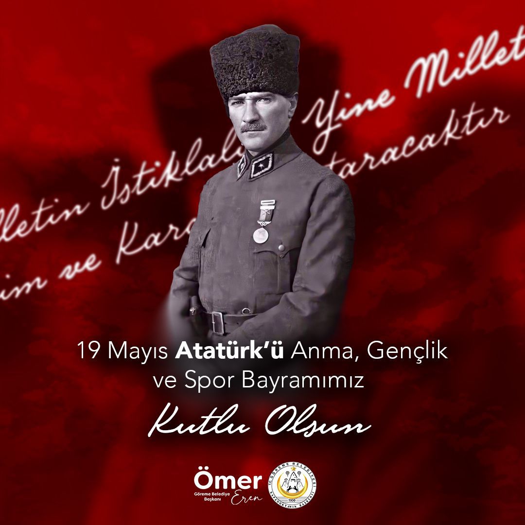 Bu duygularla başta Gazi Mustafa Kemal Atatürk olmak üzere Kurtuluş Savaşı’nın tüm kahramanlarını, şehitlerimizi, gazilerimizi rahmet, minnet ve şükranla anıyor, geleceğimizin teminatı olan gençlerimizin ve değerli Göreme’li hemşerilerimin 19 Mayıs Atatürk’ü Anma Gençlik ve Spor Bayramını kutluyor, sevgi ve saygılarımı sunuyorum.”