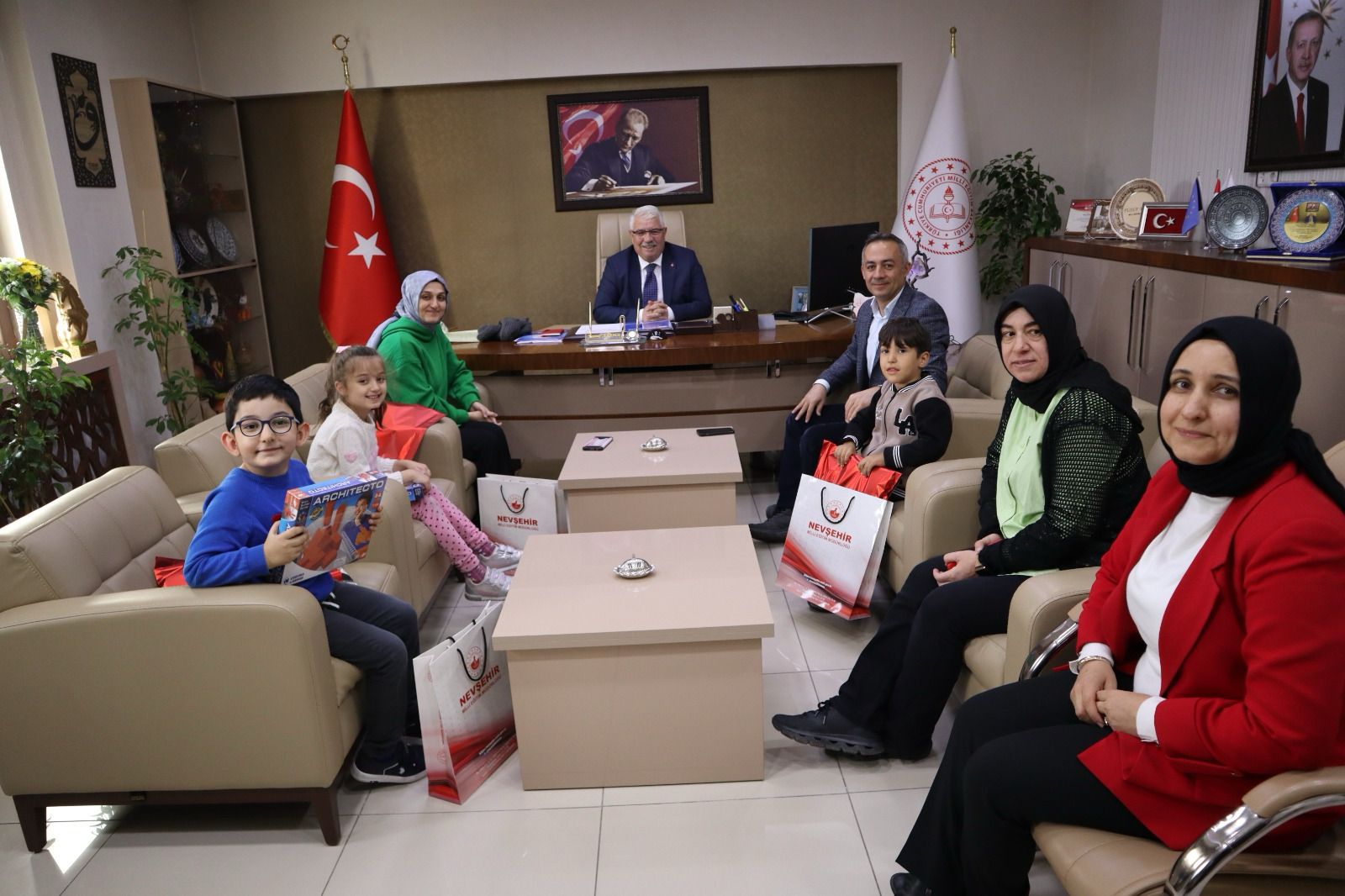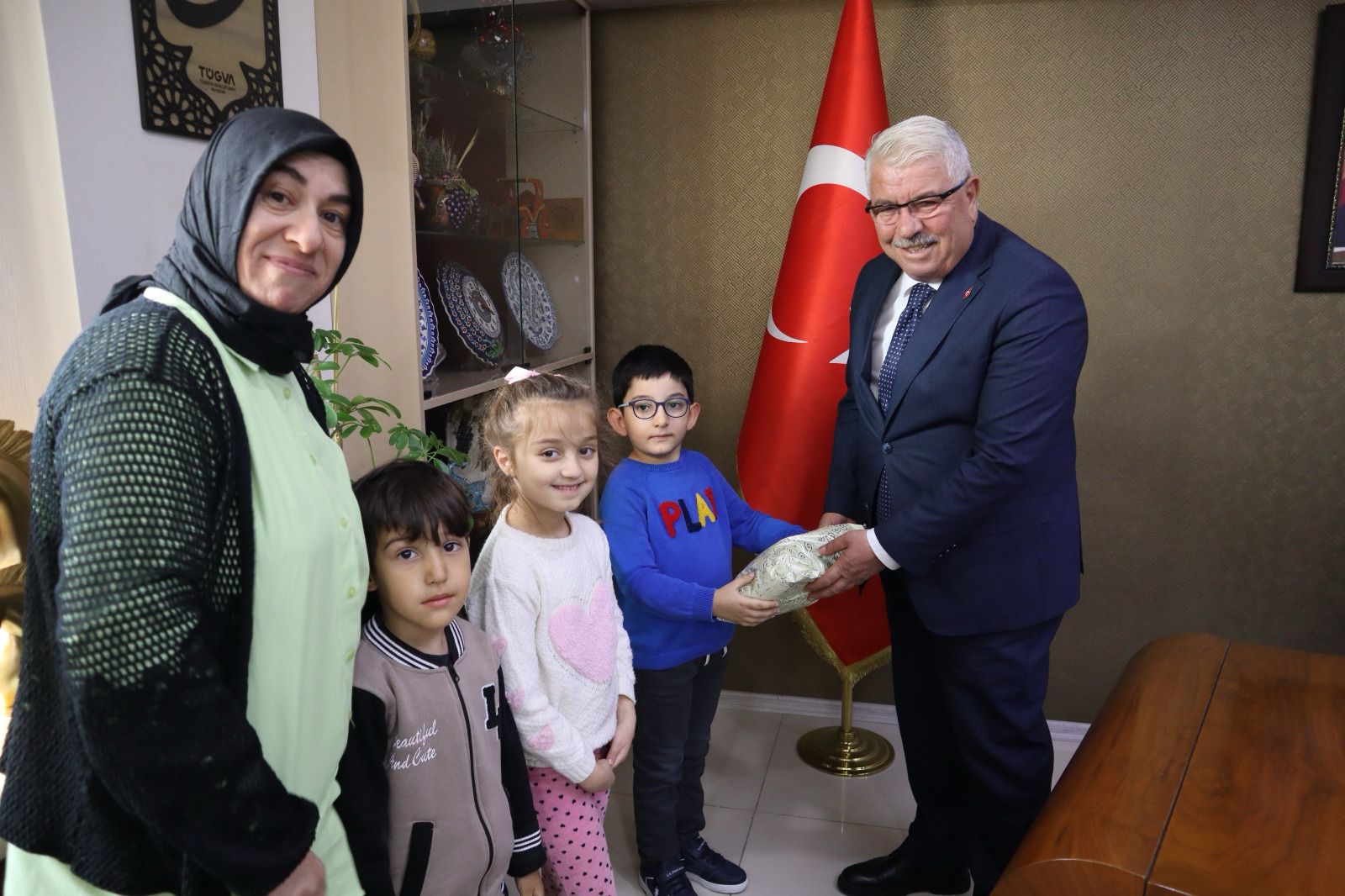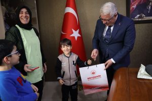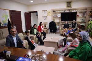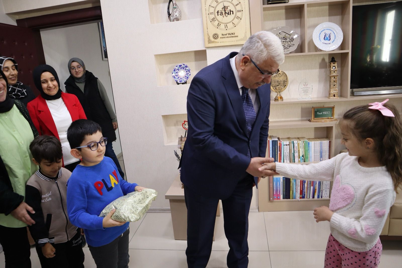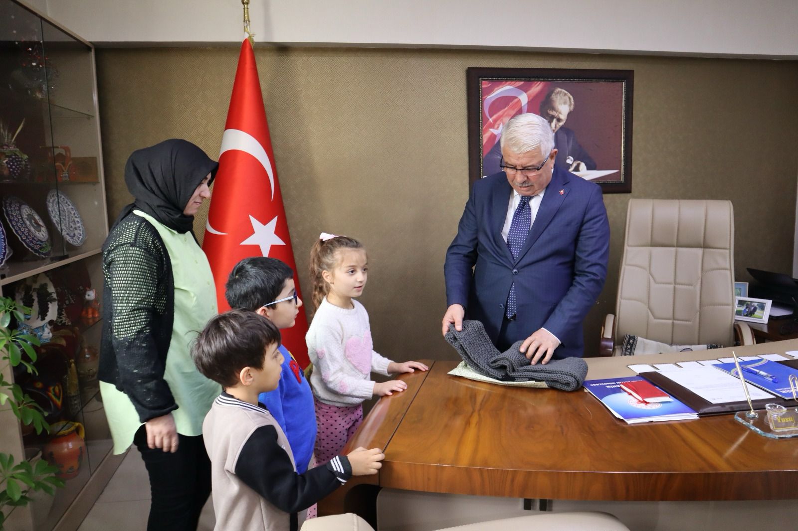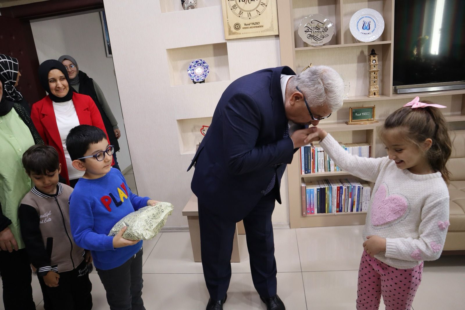 19 Mayıs İlkokulu anasınıfı öğrencileri Öğretmenler Günü münasebetiyle İl Milli Eğitim Müdürü Yusuf YAZICI’yı ziyaret etti. Ziyaret sırasında anasınıfı öğrencileri kendi örmüş oldukları atkıyı İl Müdürü Yazıcı’ya hediye ettiler. YAZICI da ziyaret esnasında öğrencilerle yakından ilgilenerek sohbet etti. Öğrencilere yapmış oldukları bu güzel çalışmalardan dolayı teşekkür ederek hediye takdim etti. Okul müdürü Ahmet Emre ERGİN, 6 Şubat’ta ülkemizde meydana gelen asrın felaketi nedeniyle zarar gören Hatay ilinden 1 okulu kardeş okul olarak belirlediklerini ve öğrencilerin ördükleri bu atkılarla beraber çeşitli ihtiyaçların temin edilerek başlatılan çalışma halkında İl Müdürünü bilgilendirdi.