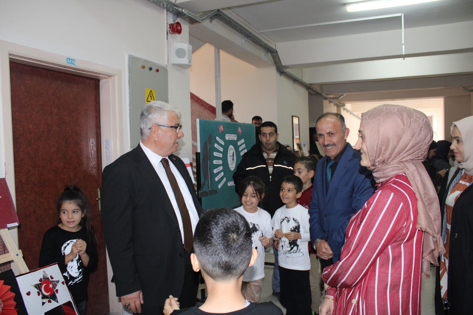 Nevşehir Belediye Başkanı Dr. Mehmet SAVRAN ve İl Milli Eğitim Müdürü Yusuf YAZICI, Atatürk Haftası münasebetiyle 19 Mayıs İlkokulu 2. sınıf ve 3. sınıf öğrencilerinin hazırlamış olduğu “Atatürk ve Anıları” sergi açılışını gerçekleştirdi. Öğrencilerin yaptığı çalışmaları inceleyen ve öğrencilerle sohbet eden SAVRAN ve YAZICI, serginin ardından öğretmenler odasına misafir oldular. Öğretmenlerle sohbet edip görüş alışverişinde bulunarak çalışmalardan dolayı teşekkür ettiler ve bu tür çalışmalara hem belediye hem de Milli Eğitim Müdürlüğü olarak her zaman destek olacaklarını belirttiler.