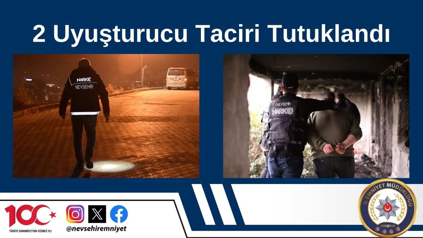 Nevşehir Narkotik Suçlarla Mücadele Şube Müdürlüğü Haftalık Çalışmaları sürüyor. Narkotik Suçlarla Mücadele Şube Müdürlüğü ekiplerince son bir hafta içerisinde yapılan çalışmalarda; 5,99 gr. Metamfetamin, 10,78 gr. kubar esrar, 15 gr. plaka esrar, 58,71 gr. skunk esrar, 98 adet sentetik ecza ele geçirilirken şüpheli 24 şahıs hakkında gerekli işlemler yapıldı. Ayrıca “TCK 188 Uyuşturucu ve Uyarıcı Madde İmal ve Ticareti” suçundan toplam 1 olay meydana gelmiş; 52,81 gr. metamfetamin, 0,58 gr kubar esrar ve 2 adet sentetik ecza maddesi ele geçirilmiş işlem yapılan şüpheli 2 şahıs tutuklandı.