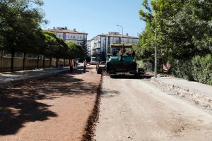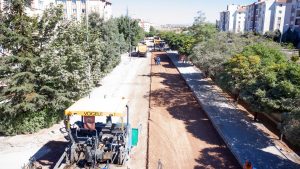 Fen İşleri Müdürlüğü ekiplerince sıcak asfalt öncesi PMT serimine başlanan bölgede yaya kaldırımları da yenilenecek.