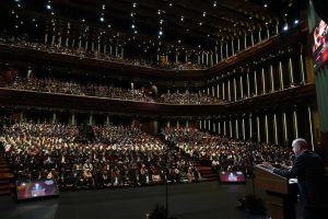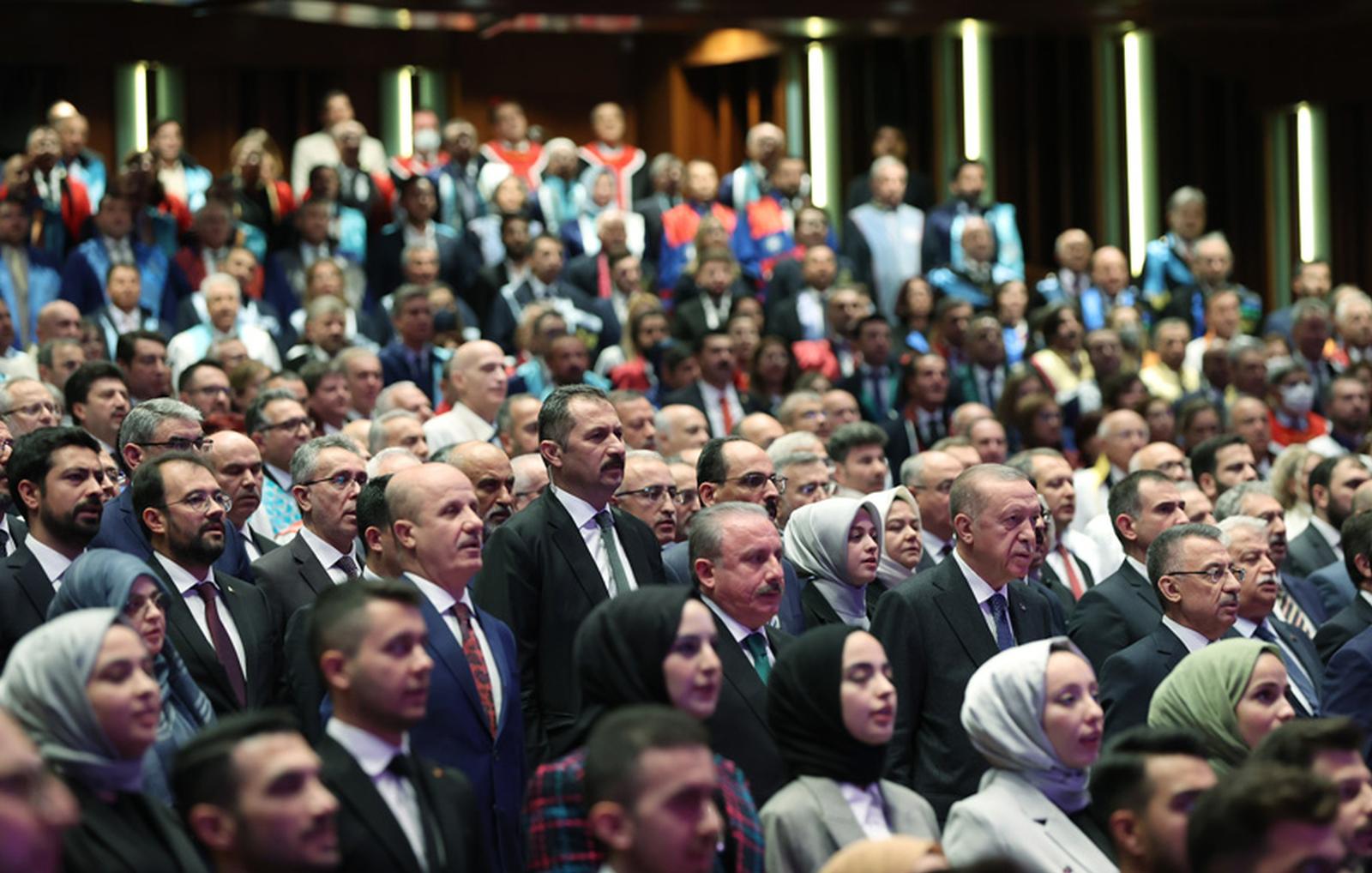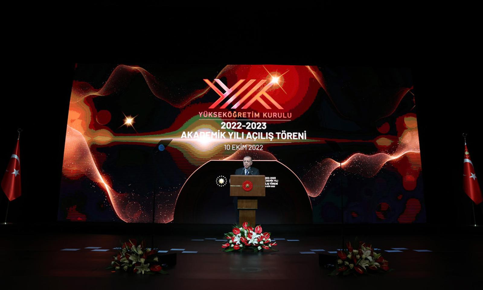 Törende konuşan Cumhurbaşkanı Recep Tayyip Erdoğan ise sözlerine “Yeni akademik yılın ülkemiz, milletimiz özellikle de sevgili öğrencilerimiz için hayırlara vesile olmasını diliyorum. Yeni akademik yılda tüm hocalarımıza ve öğrencilerimize Rabbimden muvaffakiyetler niyaz ediyorum. Bireysel ve kurumsal başarı ödüllerini az sonra takdim edeceğimiz bilim insanlarımızı ve üniversitelerimizi de canı gönülden tebrik ediyorum. Hocalarımız ve yükseköğretim kurumlarımızdan daha nice gurur verici başarılar beklediğimizi burada ifade etmek istiyorum” diye başladı.
