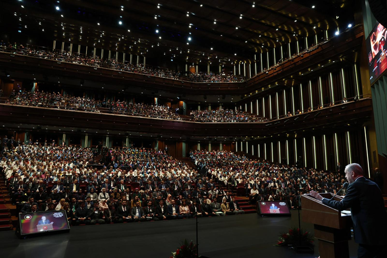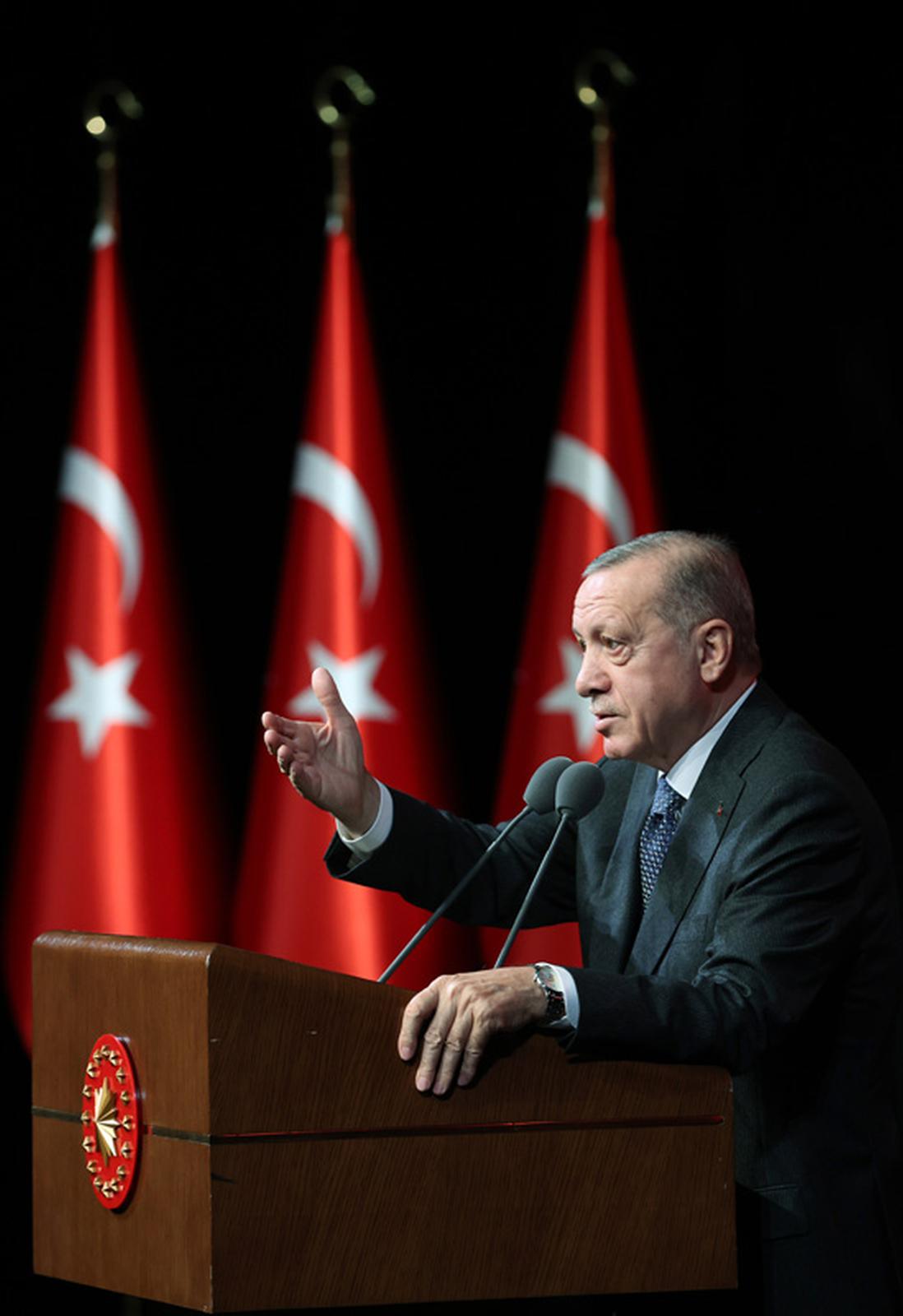 Erdoğan “Hatırlarsanız göreve geldiğimizde Türkiye’yi eğitim, sağlık, adalet, emniyet üzerine inşa edeceğimizi söylemiştik. Ardından da ulaşım, enerji, tarım, diplomasi bunlarla ayağa kalkacağımızı ülkemizi kalkındıracağımızı söylemiştik. Ülkemizin şartları ne olursa olsun 20 yıl boyunca sözümüzün arkasında durduk. Bu dört başlıktan başlayarak her alanda Türkiye’yi çok farklı bir konuma taşıdık. Biz 76 üniversiteden 209 üniversiteye çıkarken ne gerek var dediler. Ama bilmiyorlardı ki bugün Iğdır’da Muş’ta, Kars’ta, Ağrı’da üniversite olmazsa oradaki yavrularımız oradaki gençlerimiz nerede üniversite tahsilini yapacaktı? Parası, pulu imkanı varsa Ankara’ya, İstanbul’a gelecekti. Yoksa üniversite okuyamayacaktı. Ama şimdi profesörlerimiz, doçentlerimiz, tüm akademisyenlerimiz Kars’a da, Ağrı’ya da, Muş’a da gidiyor, Hakkari’ye de gidiyor ve yavrularımızı evlerinin yanı başındaki üniversitelerde okutuyorlar” diye konuştu.