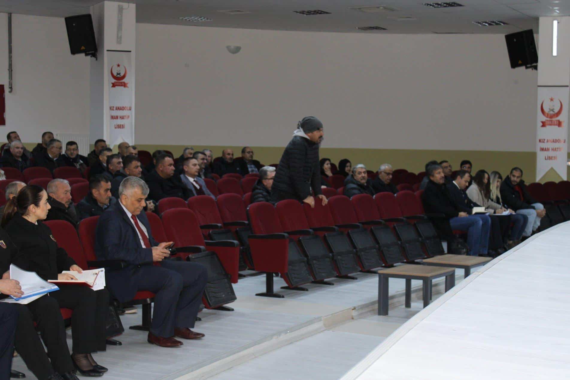 Geleceğimizin teminatı olan çocuklarımızın ve gençlerimizin huzur ve güven ortamı içerisinde eğitim öğretim faaliyetlerine devam edebilmelerini sağlamak üzere onların her türlü suç ve zararlı alışkanlıktan uzak tutulması ile korunmasına yönelik yükümlülüklerin etkinlik ve verimliliğinin değerlendirilmesini sağlamak ve bu değerlendirme süreçleri çerçevesinde ilgili tarafların iş birliği ve koordinasyonunda koruyucu, önleyici eğitim ve güvenlik tedbirlerinin yeterli seviyede alınmasını, bu yolla çocuklarımızın bedensel, zihinsel, duygusal, sosyal ve ahlaki yönden nitelikli eğitim almış sağlıklı bireyler olarak yetiştirilmesini desteklemek üzere tüm paydaşlarla güvenlik tedbirlerine ilişkin 2023-2024 eğitim öğretim yılı birinci döneminde alınan kararlar değerlendirildi. Yapılan çalışmalarla ilgili görüş alışverişi yapılarak 2023-2024 eğitim öğretim yılı 2.dönem yapılacak çalışmalar planlandı.