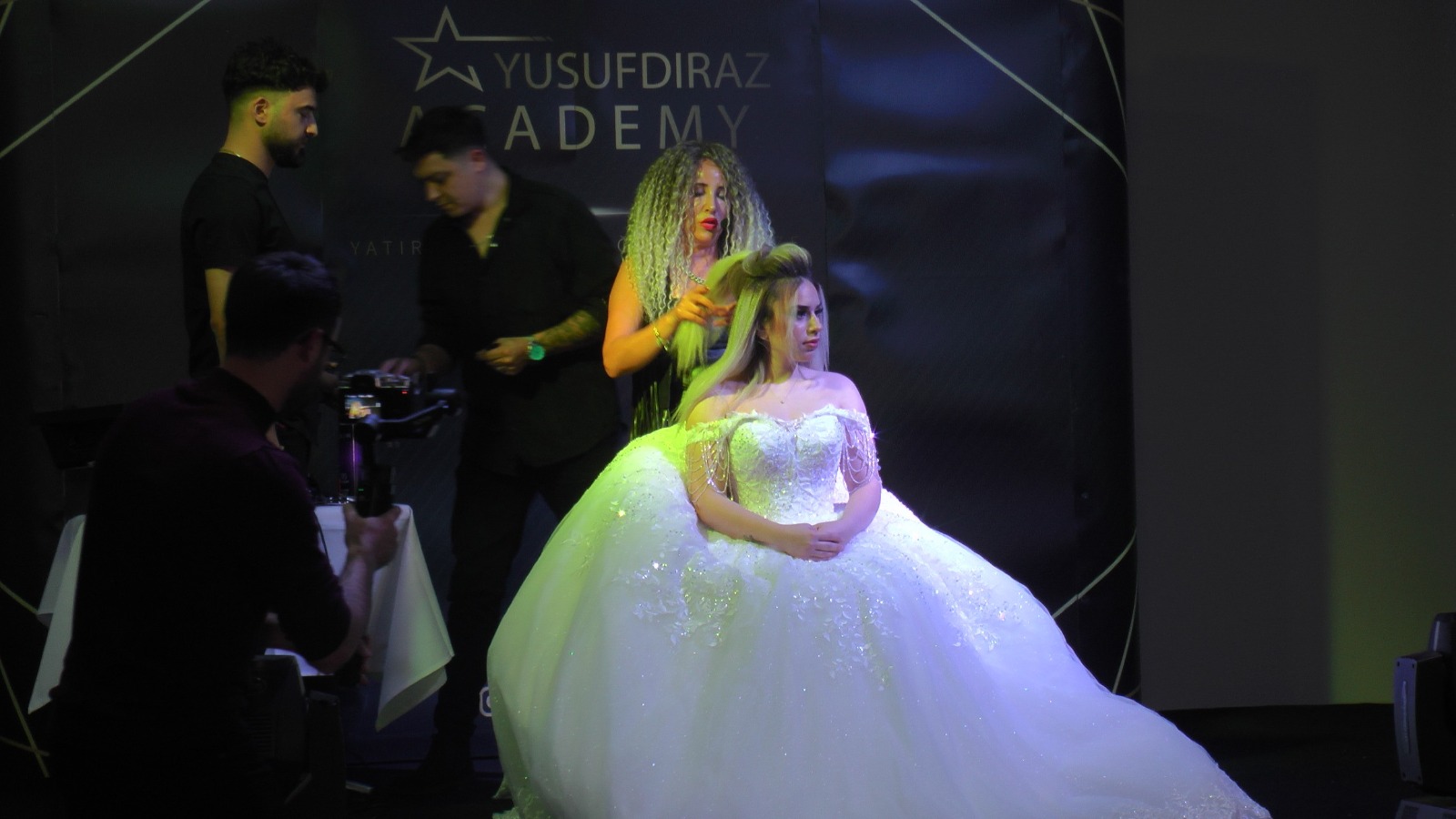 Eğitim alan kuaförler, yaptıkları makyaj ve saç tasarımlarını günün sonunda bir defile ile katılımcılara sundu.