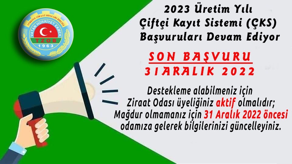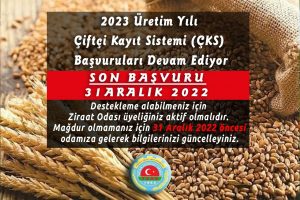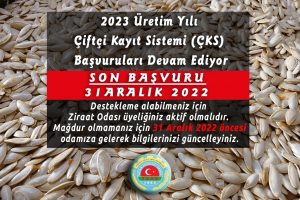 2023 üretim yılı ÇKS başvuruları başladı, 31 ARALIK 2022 tarihinde sona erecektir.
