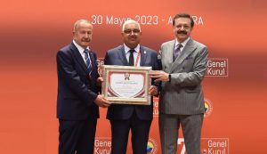 TOBB 79. Genel Kurulu kapsamında gerçekleştirilen törende, Nevşehir Ticaret Borsası Yönetim Kurulu Üyesi ve TOBB delegesi Ali Aslan’a ‘Hizmet Şeref Belgesi’ verildi. Aslan, ‘Hizmet Şeref Belgesi’ni düzenlenen törende TOBB Başkanı Rifat Hisarcıklıoğlu ile NTB Başkanı İbrahim Salaş’ın elinden aldı.
