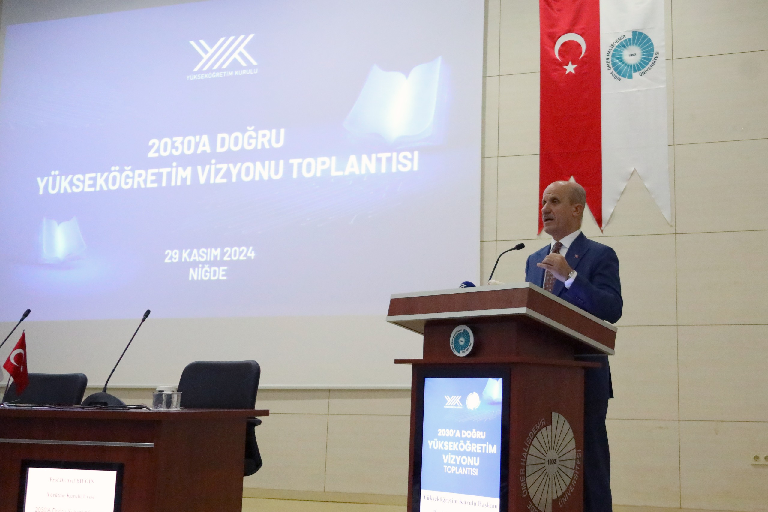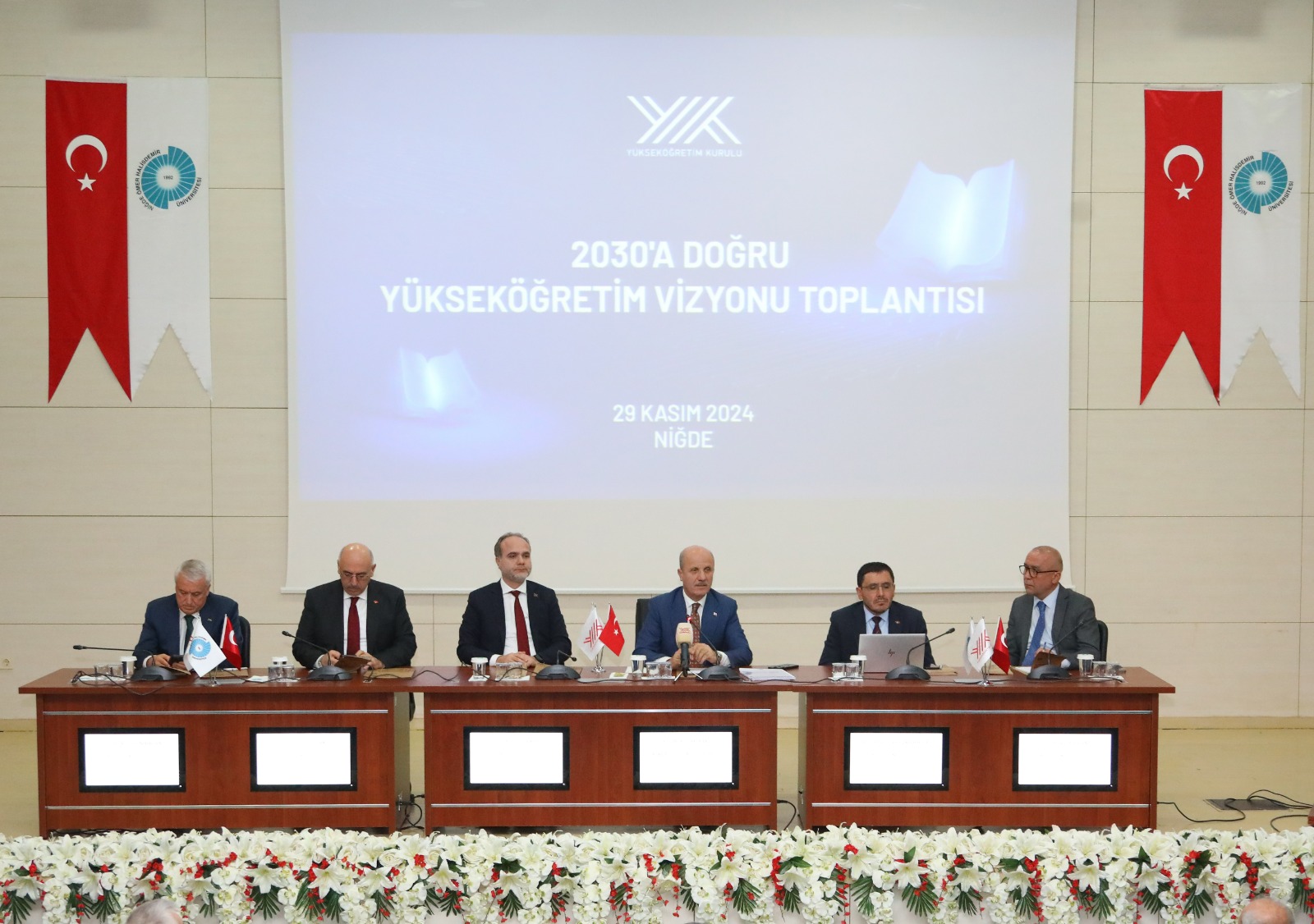 YÖK’ün “2030’a Doğru Yükseköğretim Vizyonu Toplantısı” Niğde Ömer Halisdemir Üniversitesi ev sahipliğinde yapıldı. YÖK Başkanı Prof. Dr. Erol Özvar, Yükseköğretim Yürütme Kurulu Üyeleri Prof. Dr. Naci Gündoğan, Prof. Dr. Erol Arcaklıoğlu, Prof. Dr. Mahmut Ak, Prof. Dr. Arif Bilgin ve Yükseköğretim Kurulu Üyesi Prof. Dr. Derviş Karaboğa ve YÖK başkan vekillerinin teşrifleriyle düzenlenen toplantıya 37 üniversitenin rektör ve rektör yardımcıları katıldı.