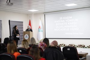Savran’ın konuşmasının ardından Nevşehir Belediyesi Aile Danışma Merkezi’nde görevli Psikolog Emine Eker tarafından ‘Şiddet ve Şiddetin Türleri” konulu bir sunum yaptı.