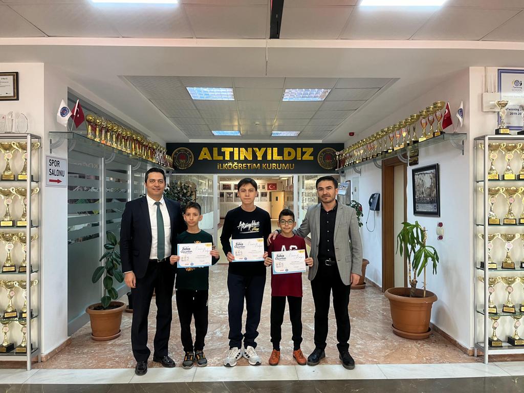 Türkiye geneli yoğun katılımla gerçekleşen yarışmada ALTINYILDIZ İLKÖĞRETİM öğrencilerinden YUSUF ŞAHİN,YUSUF KEREM AKILLI, ÇINAR DORUK KARACA ileri düzey zeka sorularını cevaplandırarak yüksek puanlarla yarifinale çıkmışlardır… ALTINYILDIZ İLKÖĞRETİM kurum müdürü Sayın AHMET ÜNAL;Bu tür yarışmaları Üreten, sorgulayan, farklı gözlerle bakabilen toplumun başlangıcı olarak görüyoruz… Yarıfinale çıkan öğrencilerimizi ve Akıl oyunları öğretmeni İsmail IŞIK ‘ı tebrik ediyor başarılar diliyorum.