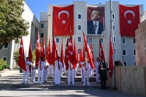 Tören Saygı Duruşu ve İstiklal Marşı’nın okunmasının ardından Bayrağımızın göndere çekilmesiyle sona erdi.