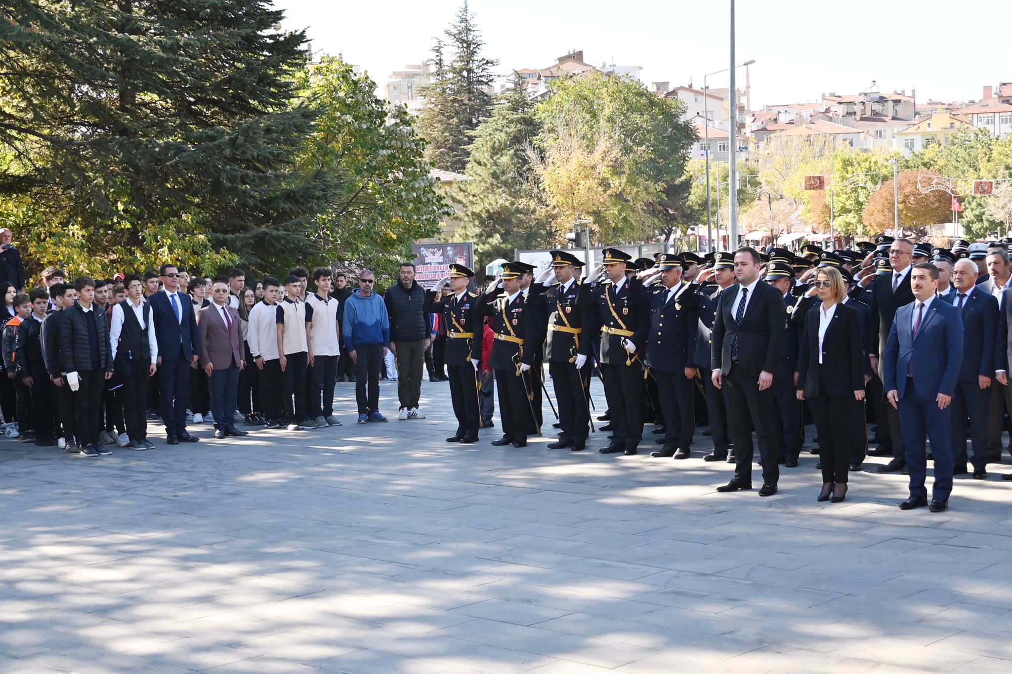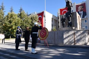 Cumhuriyetimizin kuruluşunun 99. Yıl dönümü kutlama programı kapsamında Nevşehir Valiliği önündeki Atatürk Anıtı’na çelenk sunma töreni yapıldı.