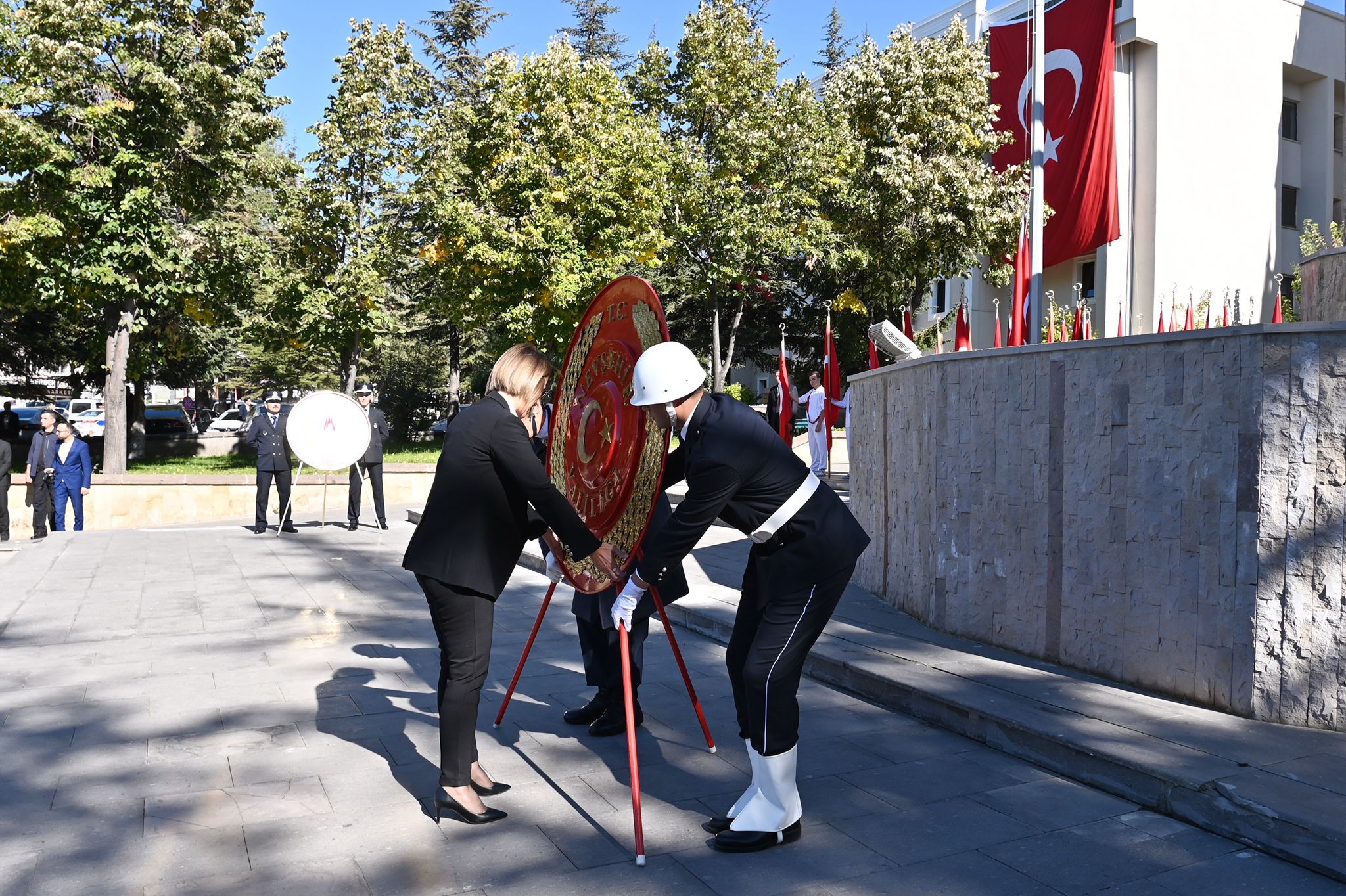 Törende Atatürk Anıtı’na; Vali İnci Sezer Becel Valilik Çelenk’ini ve akabinde Belediye Başkan Vekili Nafiz Dirikoç Belediye Çelenk’ini sundular.