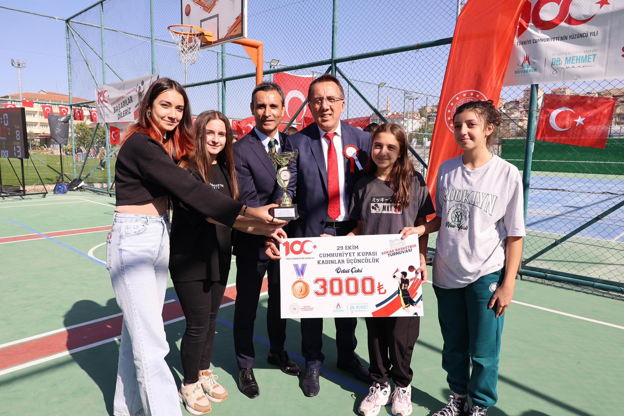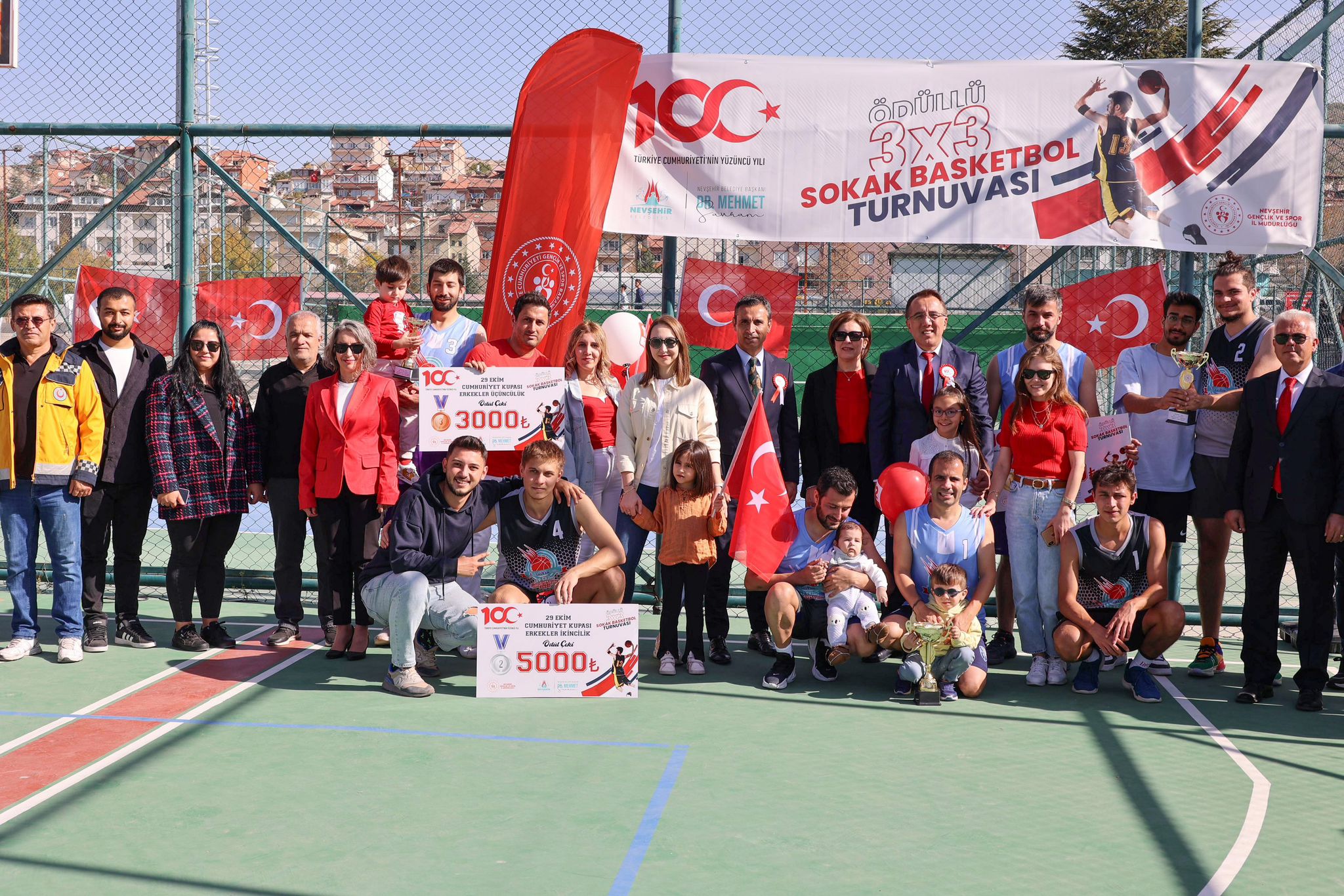 Nevşehir Belediyesi Gençlik ve Spor Hizmetleri Müdürlüğü ve Nevşehir Gençlik ve Spor İl Müdürlüğü tarafından Türkiye Cumhuriyeti’nin 100. Yılı dolayısıyla düzenlenen “3×3 Sokak Basketbolu Turnuvası” sona erdi. Turnuvada dereceye giren takım ve sporculara ödülleri düzenlenen törenle verildi.
