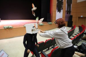 2005 yılında Japonya’da kurulan ve dünya çapında 33 ülkeyi gezen komedi performans grubu 3 Gaga Heads’in, Nevşehir Hacı Bektaş Veli Üniversitesi (NEVÜ) performansı büyük ilgi topladı.