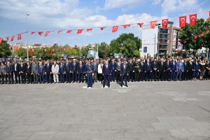 Çelenk sunumunun ardından gerçekleştirilen törende; il protokolü, kamu kurum ve kuruluş temsilcileri, sivil toplum kuruluşları, öğrenciler ve vatandaşlar hazır bulundu.