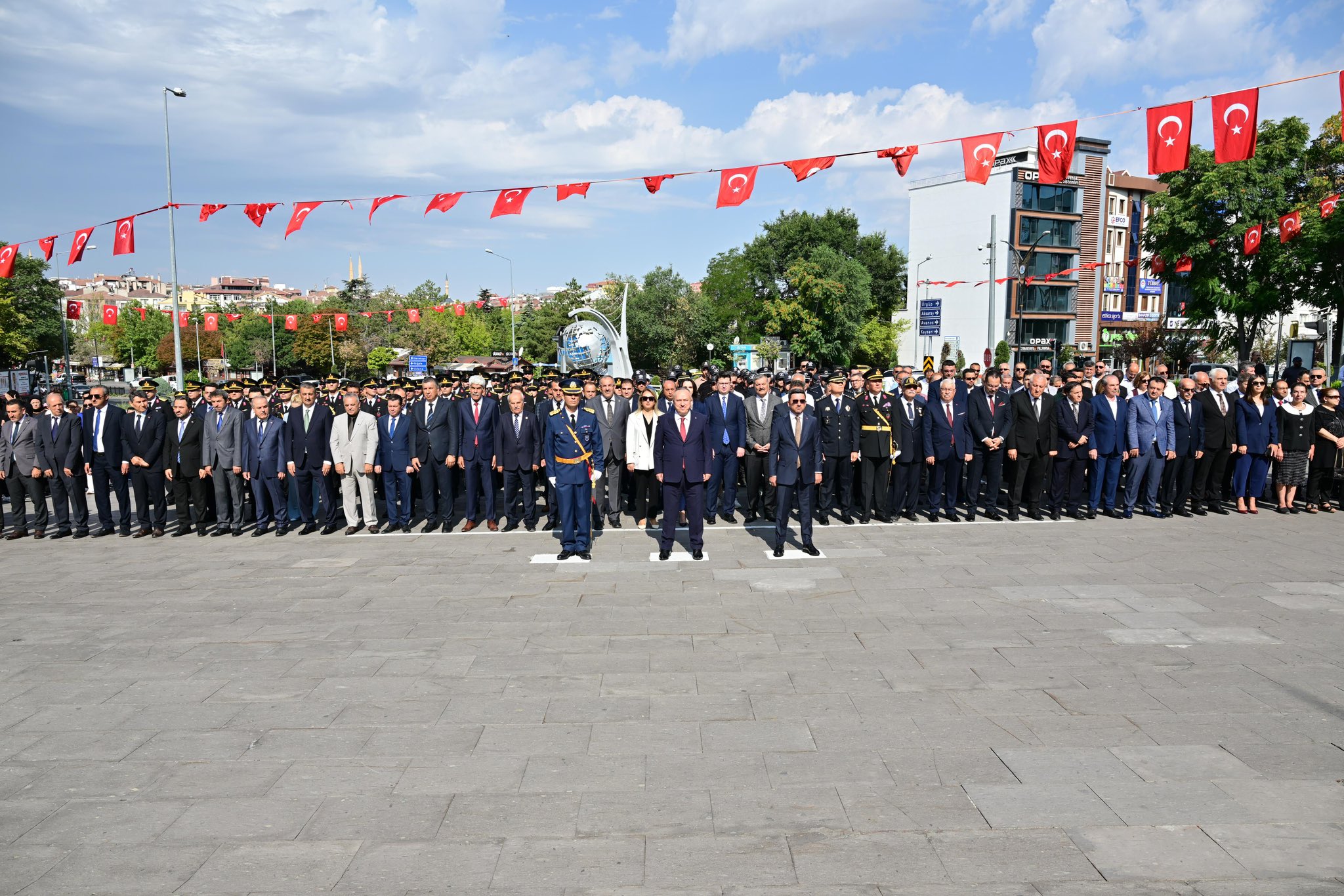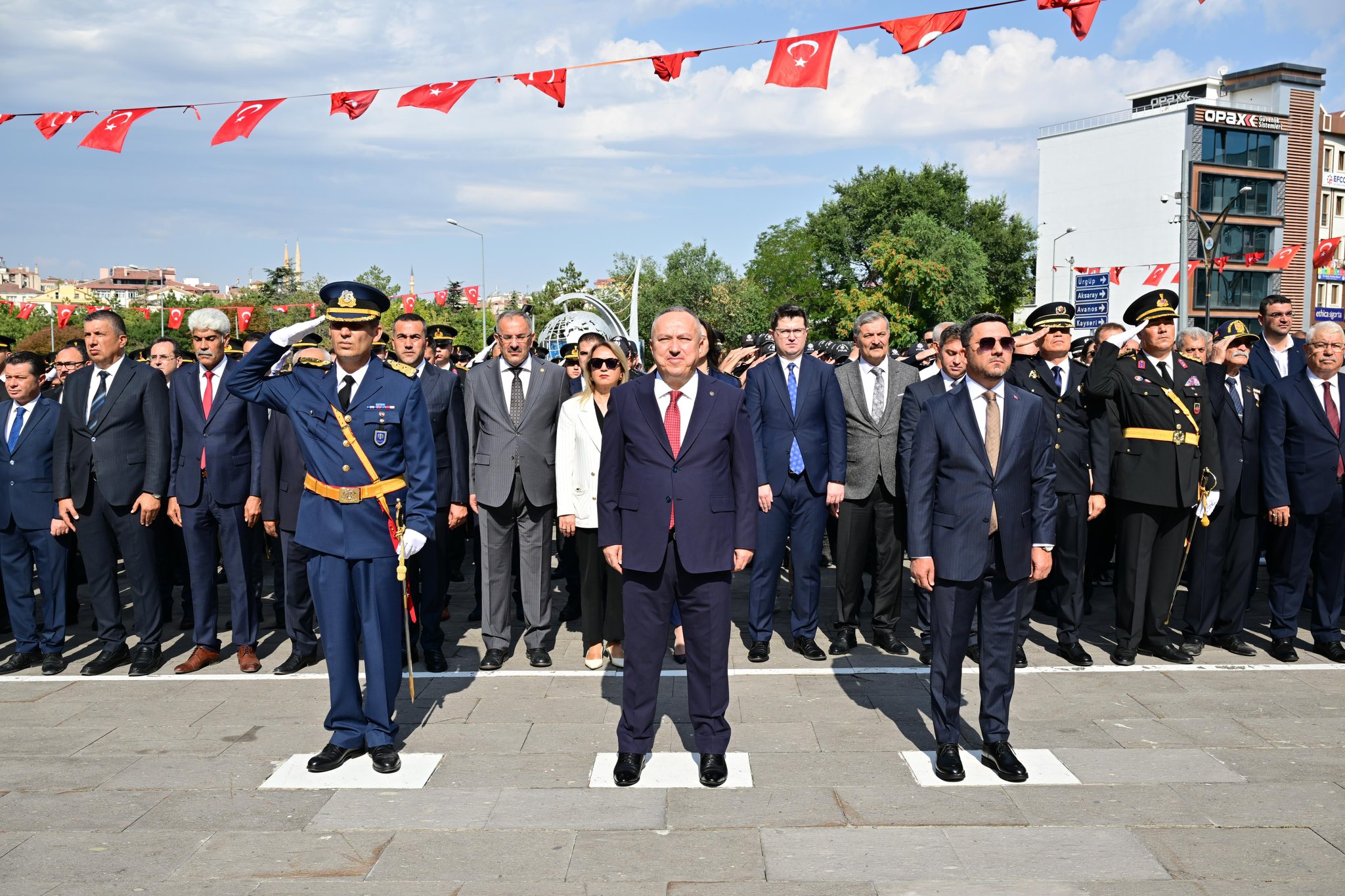 30 Ağustos Zafer Bayramı’nın 103. yıl dönümü, Nevşehir’de düzenlenen törenlerle start aldı. Program, Nevşehir Valisi Ali Fidan’ın Hükümet Konağı önünde bulunan Atatürk Anıtı’na çelenk sunmasıyla başladı.