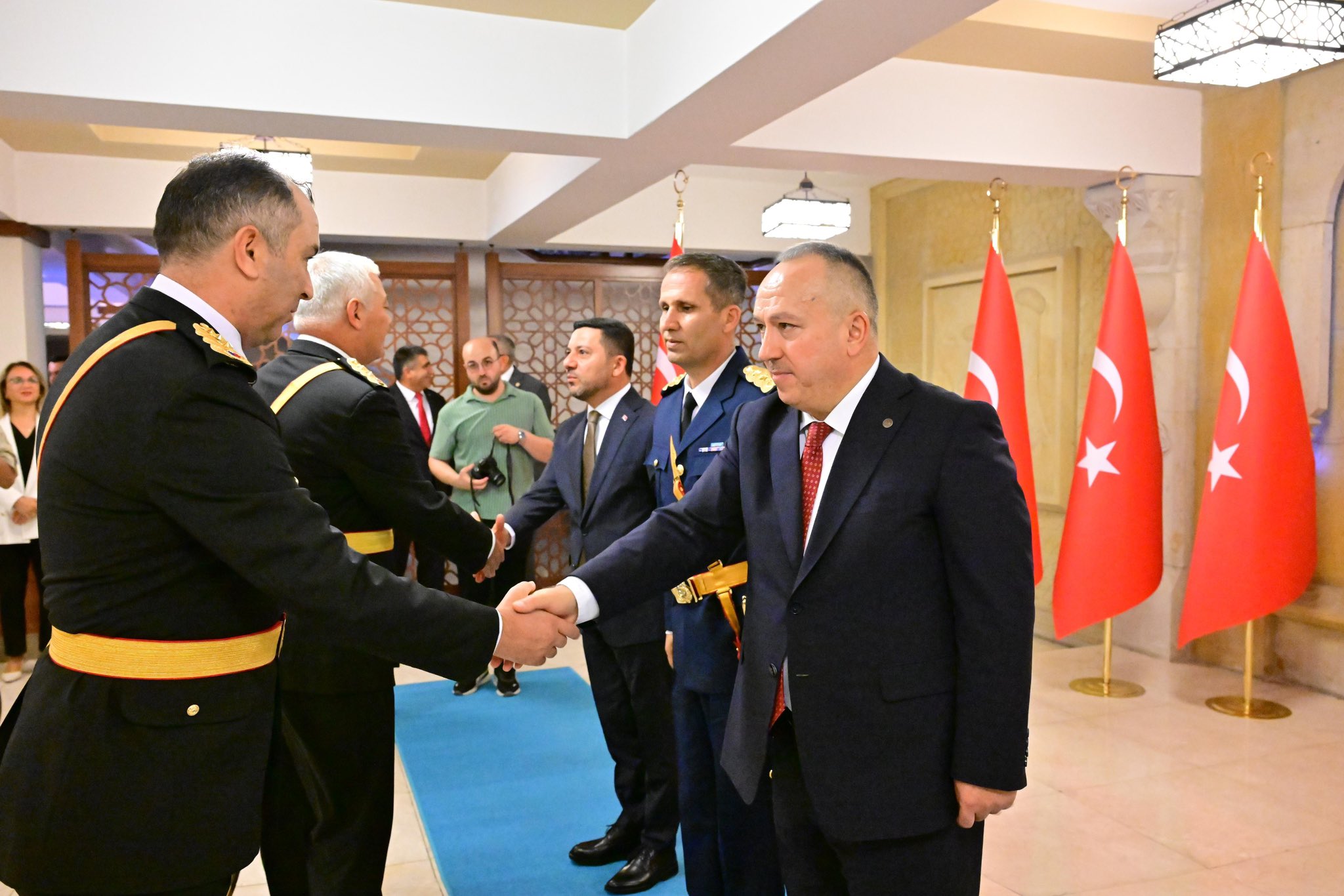 Kutlamalar kapsamında, 30 Ağustos Zafer Bayramı’nın 103. yıl dönümü münasebetiyle düzenlenen Tebrikat Töreni de Valilik Fuaye Salonu’nda yapıldı. Burada Vali Ali Fidan, Garnizon Komutanı Nedim Bildik ve Nevşehir Belediye Başkanı Rasim Arı ile birlikte tebrikleri kabul etti.