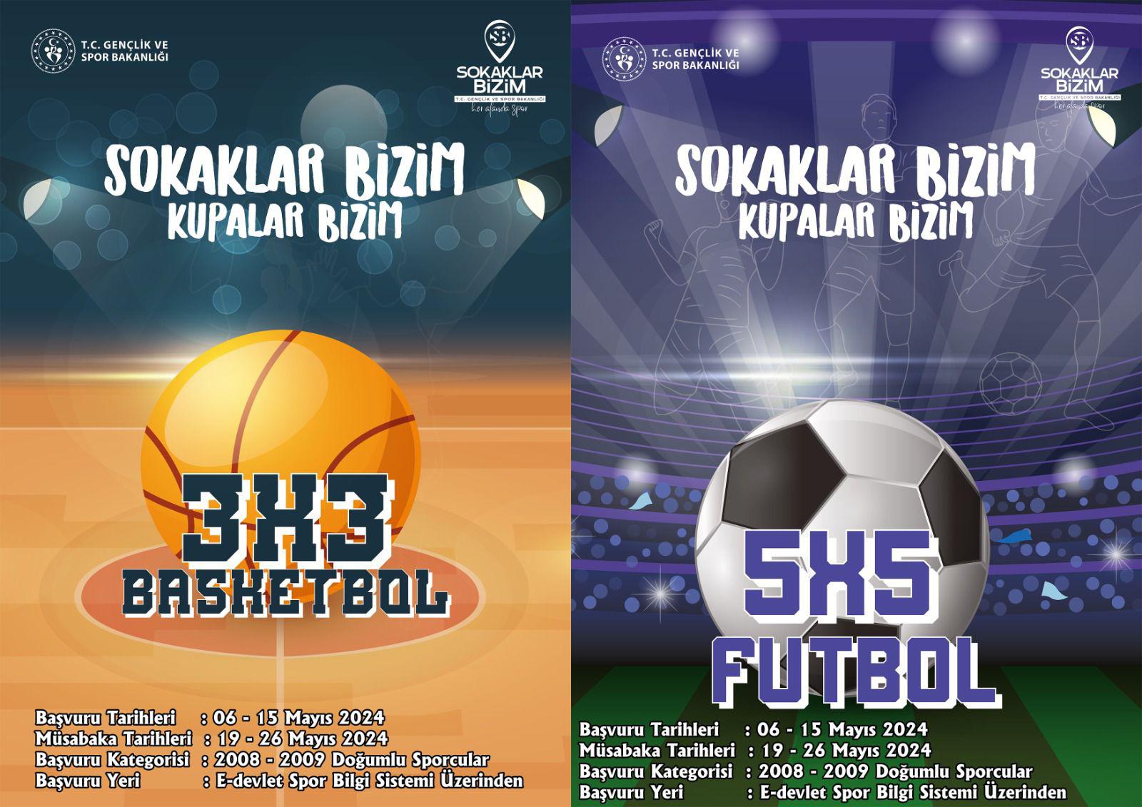 “3×3 Basketbol” ve “5×5 Futbol” turnuvalarına 06 – 15 Mayıs 2024 tarihleri arasında 2008 ve 2009 doğumlu sporcular E-devlet spor bilgi sistemi üzerinden ve aynı zamanda Ek-1 formunu doldurarak müracaat edecek. 19 – 26 Mayıs 2024 tarihleri arasında ise müsabakalar oynanacak.