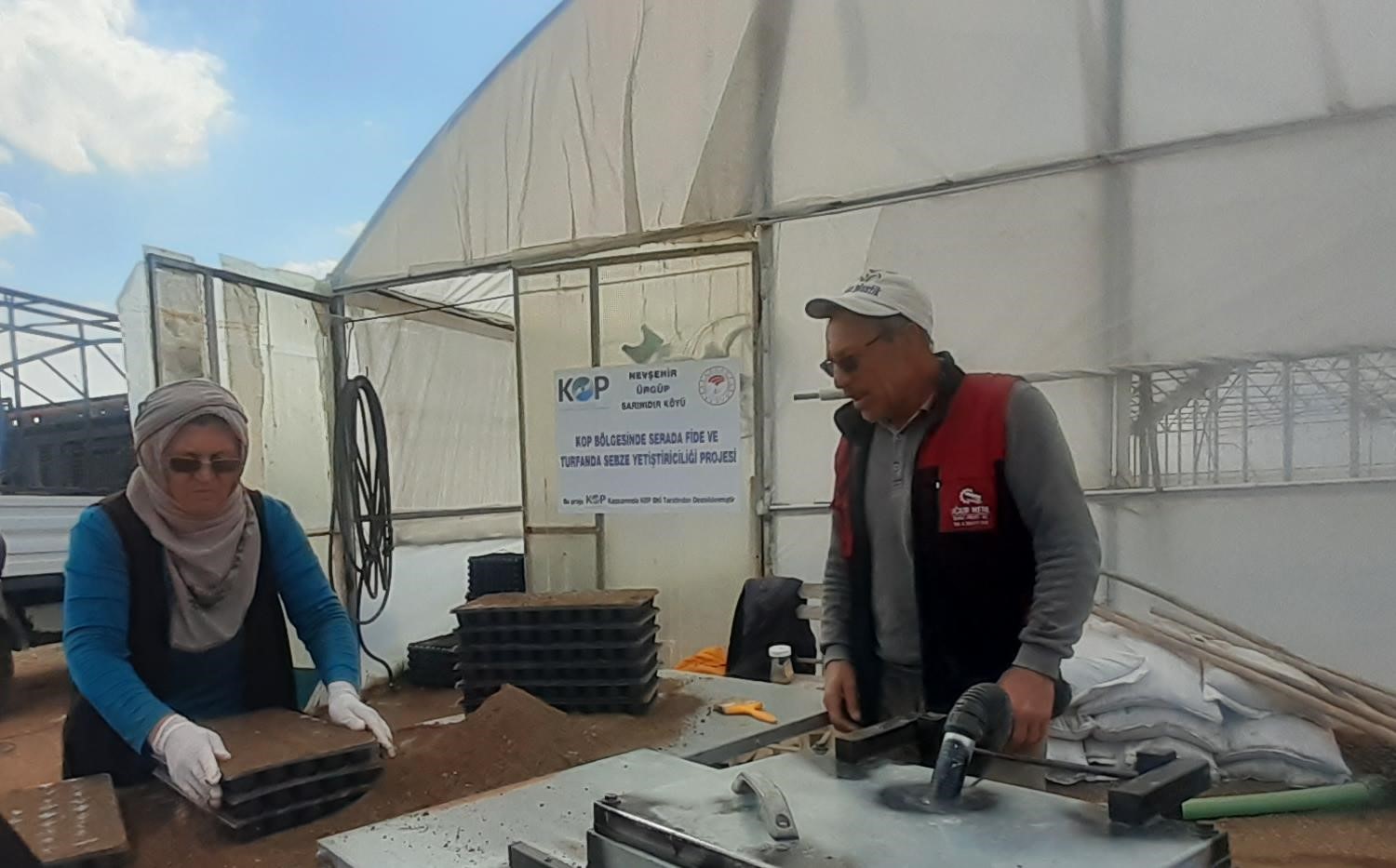 Yaklaşık 40 milyon tohumun toprakla buluştuğu Konya Ovası Projesi (KOP) destekli seralarda ekimi yapılan tohumlar, Mayıs ayında satışa hazır hale gelecek. Sarıhıdır köyündeki seralarda biber, salatalık, patlıcan, domates fidelerinin yanı sıra kavun, karpuz fidesi üretimi de yapılıyor.