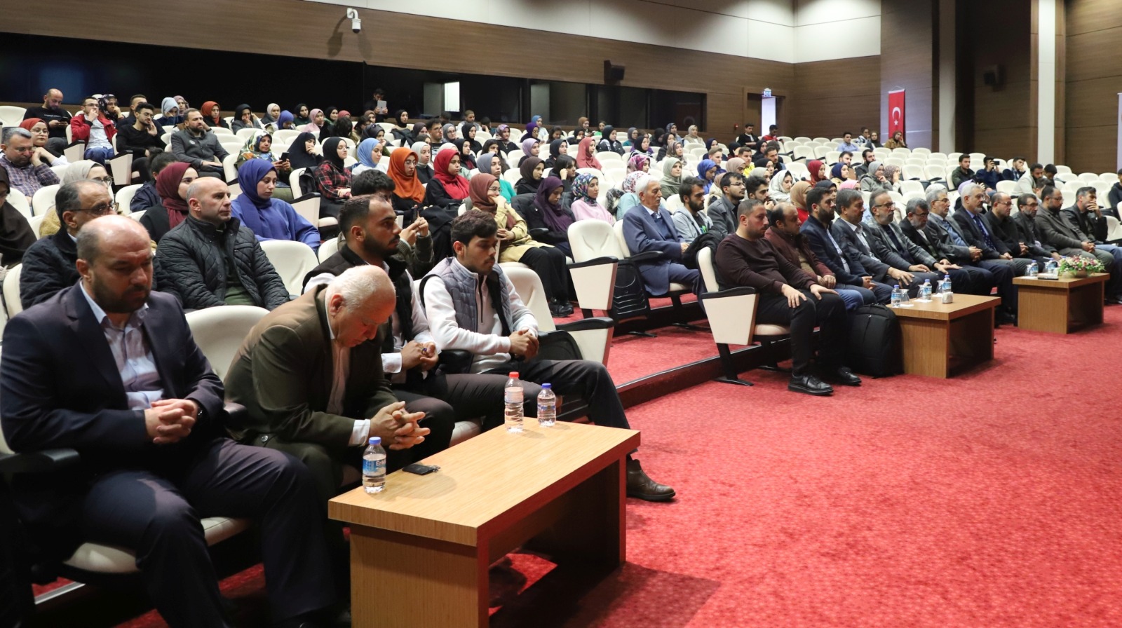 Programın açılışında konuşan İlahiyat Fakültesi Dekan Yardımcısı Dr. Öğr. Üyesi Mustafa Sağlam “Bugün neredeyse sene-i devriyesine yaklaştığımız şu günlerde 6 Şubat’ta Kahramanmaraş merkezli depremde kaybettiğimiz üniversitemiz öğrencilerini rahmetle anmak, kaybettiğimiz öğrencilerimiz başta olmak üzere tüm insanlarımız için Kur’an-ı Kerim okumak ve dualarda bulunmak için burada toplanmış bulunuyoruz. Ayrıca Gazze’de terör devleti katil İsrail’in acımasız bir vahşetle katlettiği çocuk, yaşlı ve tüm Müslümanlara dua edebilmek için buradayız” diye konuştu.