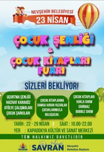Nevşehir Belediyesi tarafından 23 Nisan Ulusal Egemenlik ve Çocuk Bayramı dolayısıyla ‘23 Nisan Çocuk Şenliği ve Çocuk Kitapları Fuarı’ düzenlenecek. Çok sayıda yayınevinin ve yazarların katılacağı etkinlikte çocuklar hem kitaplarla buluşacak hem de bayramı gönüllerince kutlayacak.