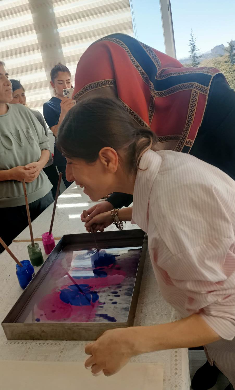 Etkinlik kapsamında katılımcılar, kadınların geleneksel sanatlardaki rolünü yansıtan Sema İcrası’nı izleme ve Ebru sanatını uygulama fırsatı buldu. Ebru atölyesinde renkli çalışmalara imza atan kadınlar, hem sanatsal becerilerini keşfetti hem de keyifli vakit geçirdi.