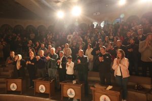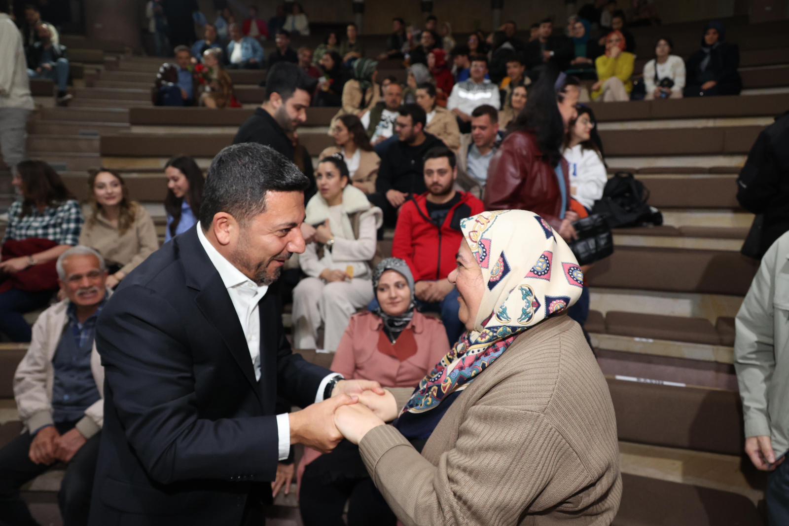 Oyununun izleyicileri arasında yer alan Belediye Başkanı Rasim Arı, oyun sonrasında oyuncuları tebrik etti.