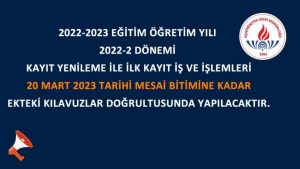 2022-2023 eğitim öğretim yılı 2022-2 dönemi kayıt yenileme ile ilk kayıt iş ve işlemleri 20 Mart 2023 tarihi mesai bitimine kadar yapılacak.