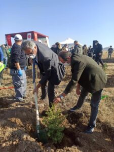 Nevşehir Valiliği, Nevşehir Hacı Bektaş Veli Üniversitesi koordinesi ile Orman İl Müdürlüğü tarafından gerçekleştirilen Milli Ağaçlandırma Günü’nde Türk Eğitim Sen Nevşehir şubesi katılım gösteren yönetim kurulu üyeleri Başkan Tayfur Urgenç, Başkan Yardımcısı Memiş Bülbül ve Üniversite temsilcisi Abdullah Çamcı sembolik olarak birer ağacı toprakla buluşturarak Geleceğe Nefes etkinliğine destek verdiler.