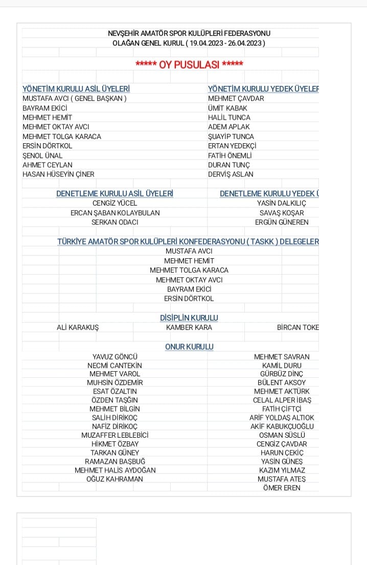 Nevşehir ASKF Başkanı Mustafa Avcı konuya dair yaptığı açıklamada “15. Olağan Genel Kurulumuz sonrası katılım sağlayan bütün üye kulüplerimize ve delegelerimize verdikleri destek için çok teşekkür ediyorum. Hem şahsım hem de yönetim kurulu üyelerim adına verdiğiniz destek ve güçle ilimizi ulusal düzeyde en iyi şekilde temsil etmeye devam ediyorum. Bu doğrultuda oluşturduğumuz Federasyon Onur Kurulu üyelikleri için bütün üyelerimizi tebrik ediyor Nevşehir amatör sporunun gelişmesine sağladıkları katkılardan dolayı şükranlarımı sunuyorum” dedi.