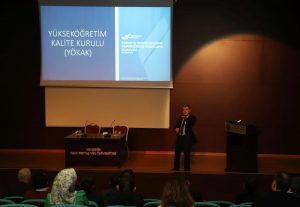 Akın’ın ardından söz alan KAEÜ Rektör Yardımcısı Prof. Dr. Mustafa Kasım Karahocagil, ‘AYDEP ve Bütünleşik Kalite Yönetim Sistemi’ hakkında genel bilgiler vererek, bu projelerin eğitim-öğretimde program akreditasyon süreçlerini yönetmek, eğitim-öğretim faaliyetlerinin niteliğini artırmak amacıyla yapıldığını ifade etti.