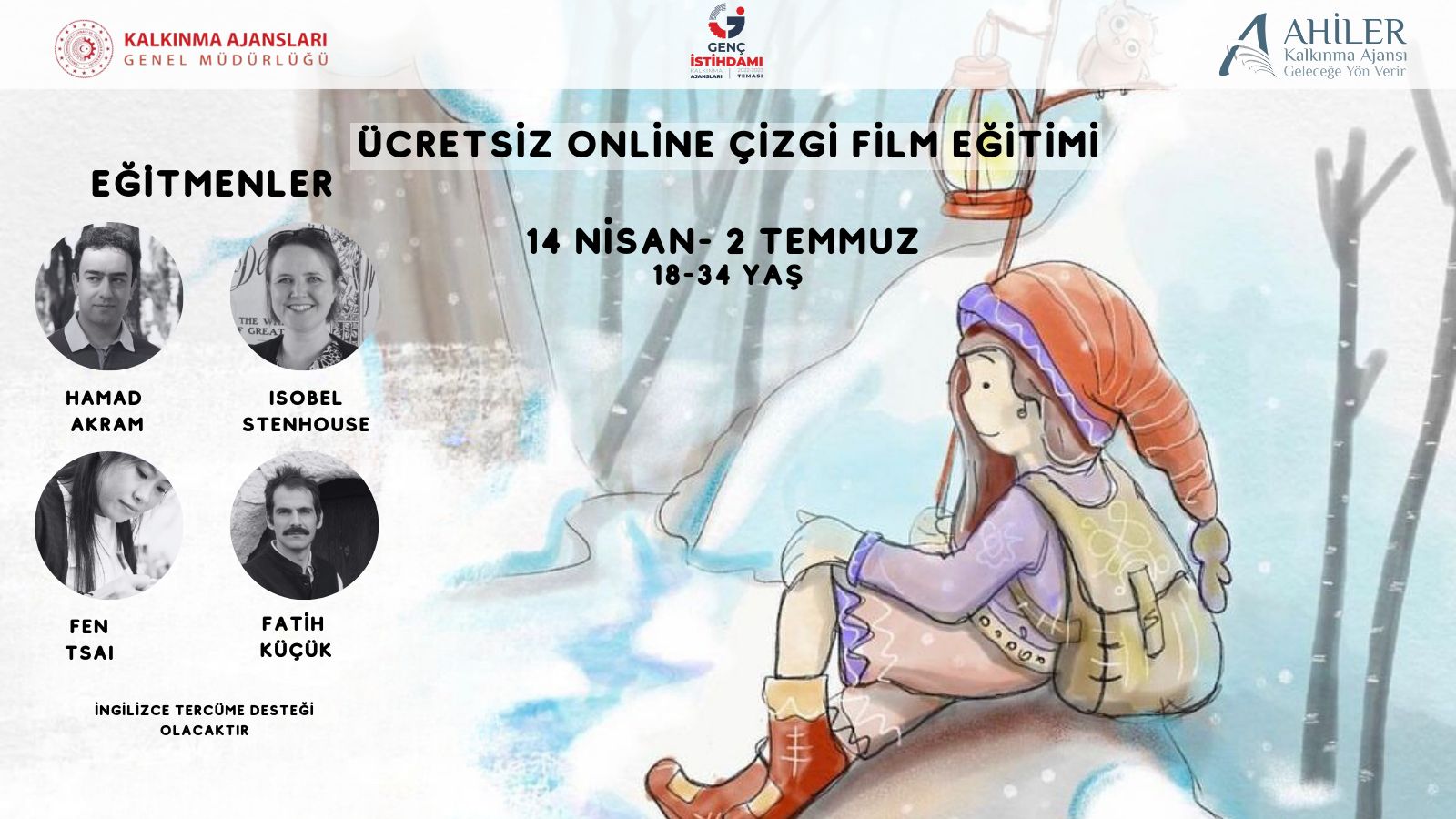 2022-2023 Genç İstihdamı Teması kapsamında Ahiler Kalkınma Ajansı tarafından çizgi film sanatını meslek edinmek isteyen bireylerin bu alandaki gelişimini desteklemek ve meslek edinmesinde onlara rehberlik etmek amacıyla ücretsiz online çizgi film eğitimi düzenlenecek.