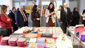 Sayın Vali Yardımcımız, İl Müdürümüz ve protokol üyeleri; sergi alanındaki eserleri tek tek inceleyerek kursiyerlerden çalışmaları hakkında bilgi aldı.