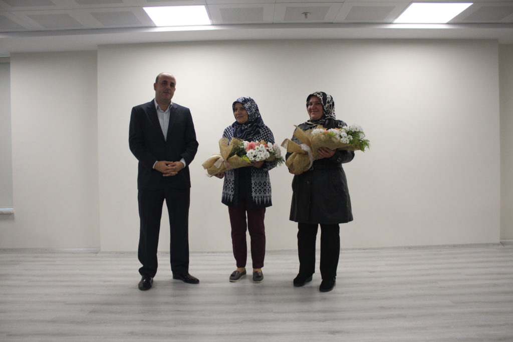 Yapılan eğitime farkındalık oluşturmak adına ,kanser teşhisi konulan ve tedavi olan Fatma Tuzdelener, Melahat Yayla, Necla Yılmaz ve Adile Altan hastalığı ,teşhis, tedavi süreci ve erken teşhisin önemi hakkında bilgi vermek için davet edilmiş; eğitim sonunda kendilerine İl Sağlık Müdürümüz Dr. Rahim Ünlübay ve Halk Sağlığı Hizmetleri Başkanı Dr. Hakan Öcal tarafından çiçek takdim edildi.