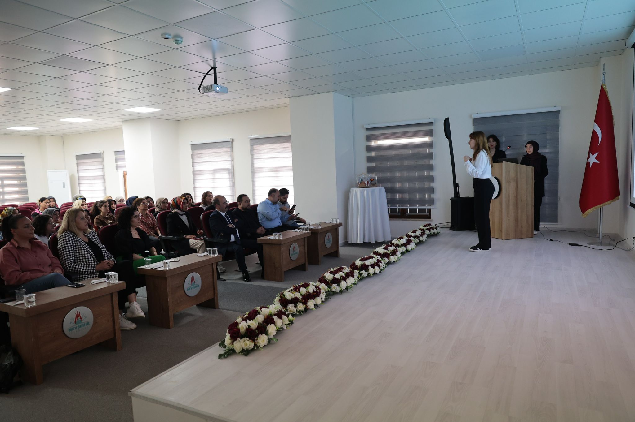 Nevşehir Belediyesi Kadın ve Aile Hizmetleri Müdürlüğü toplantı salonunda düzenlenen konferansa, Nevşehir Belediyesi Kadın ve Aile Hizmetleri Müdürlüğü Kadın Çalışmaları Eğitim Merkezi (KAÇEM) kursiyerleri katıldı.