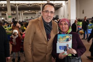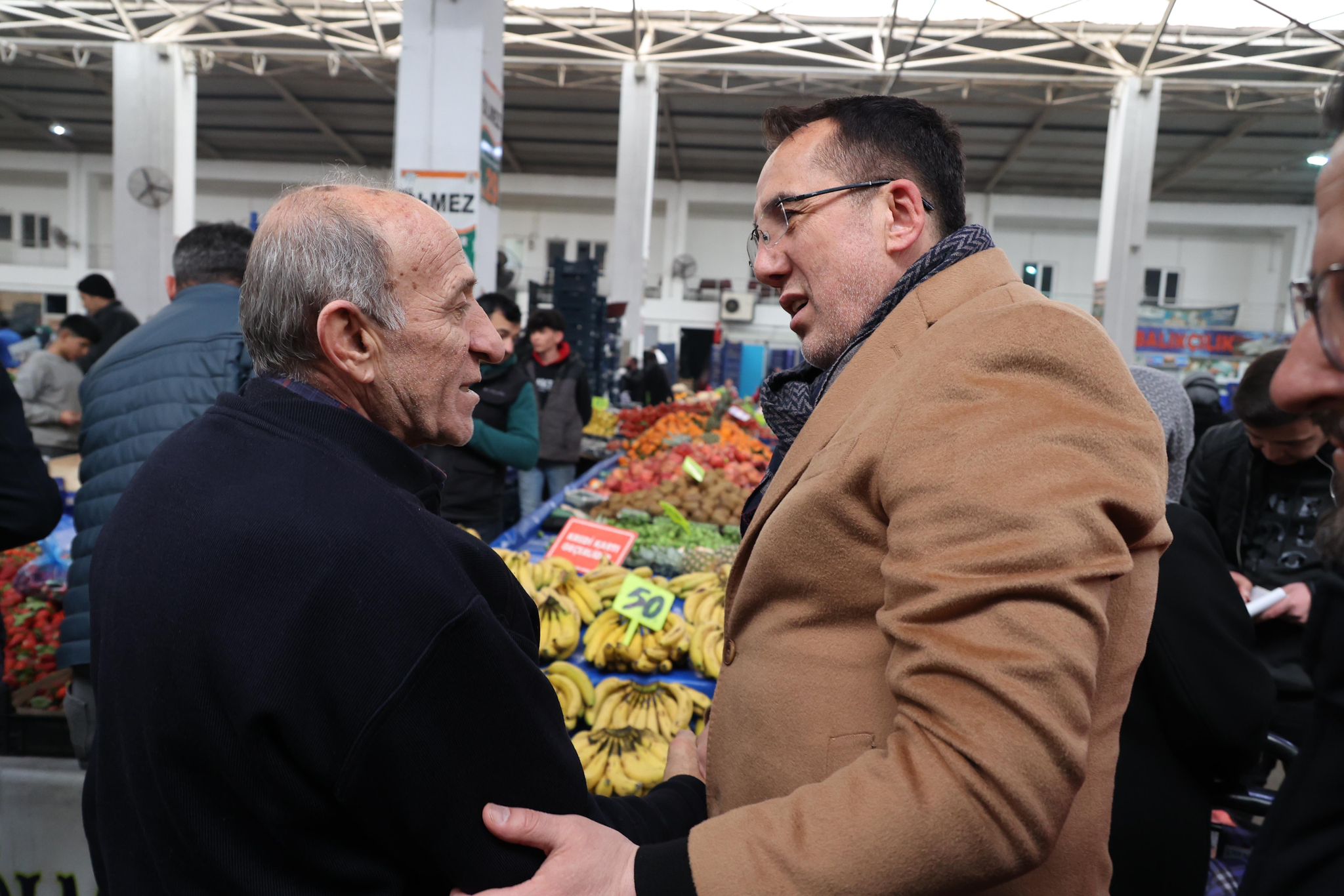 Kapalı Pazar yeri içerisinde hem esnafların hem de vatandaşların yoğun ilgisi ile karşılanan Savran’a, AK Parti Merkez İlçe Başkanı Murat Özkaya ve parti yöneticileri eşlik etti.